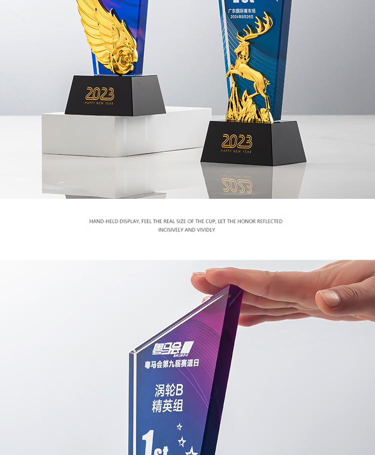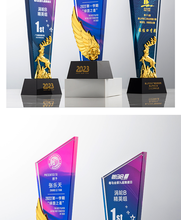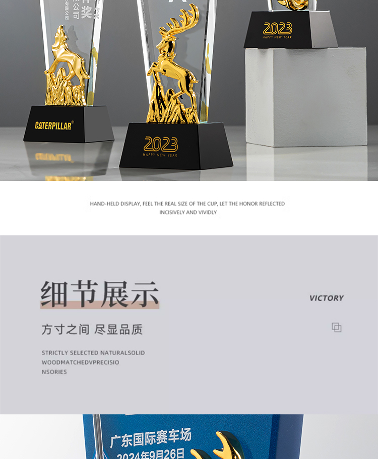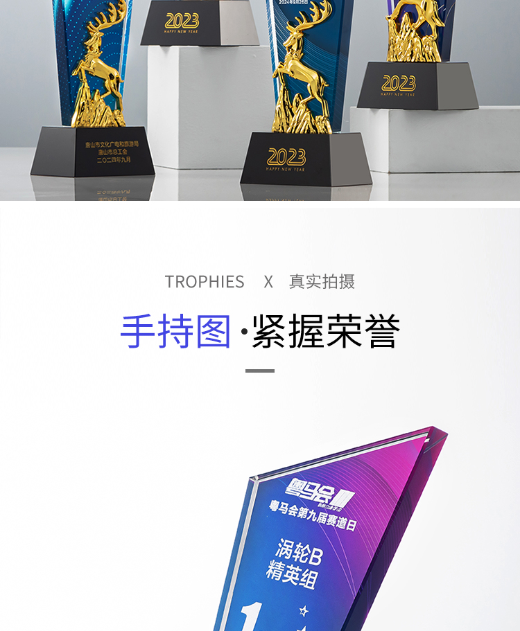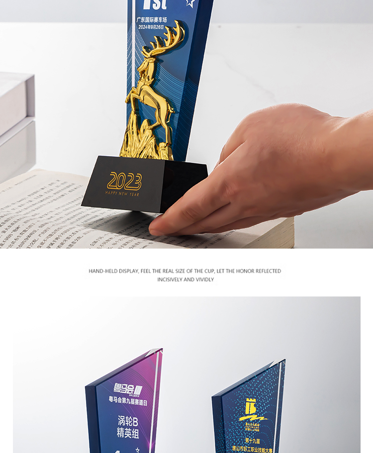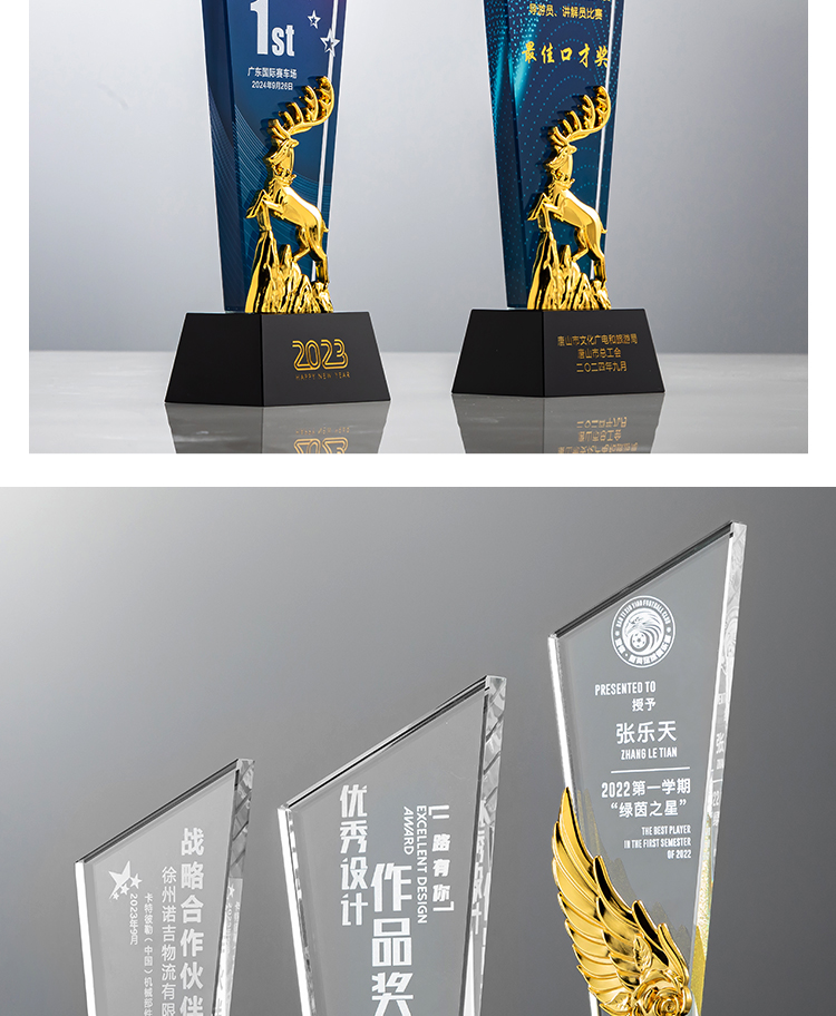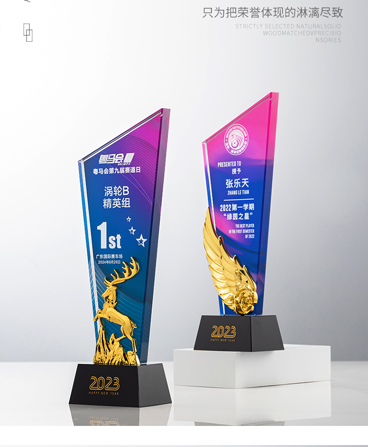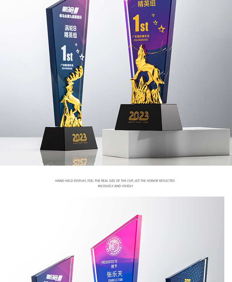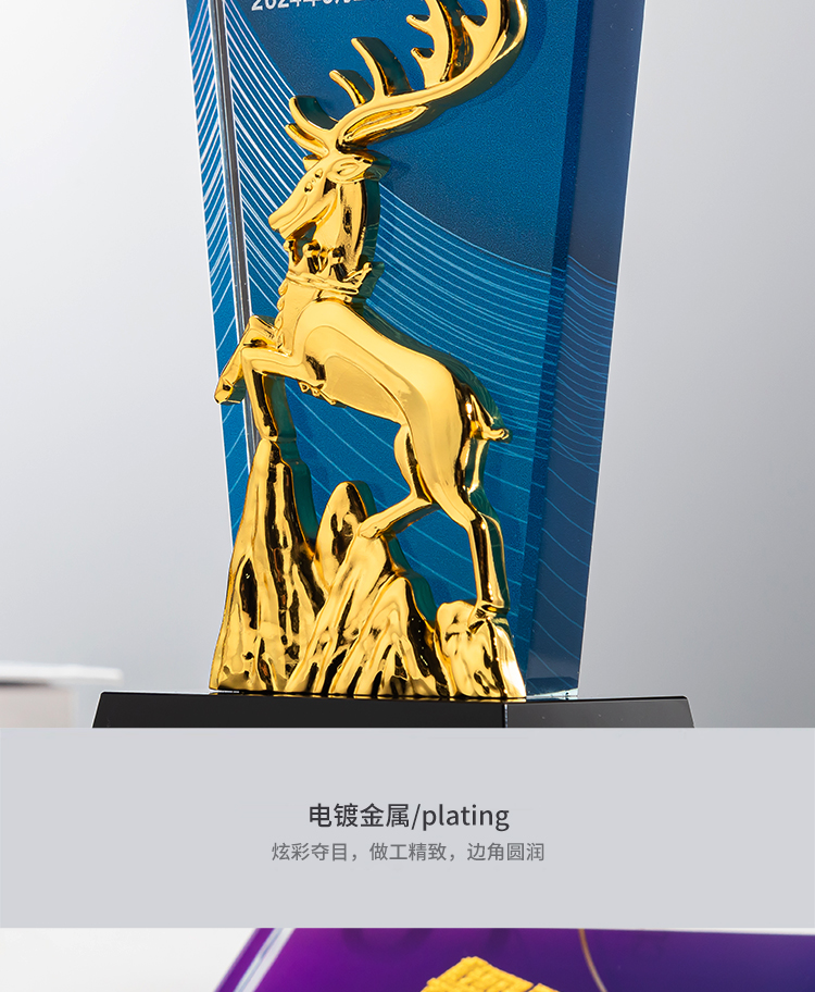 订制水晶奖杯彩色创意奖牌狼鹿飞翔优秀员工荣誉团队公司文化奖励