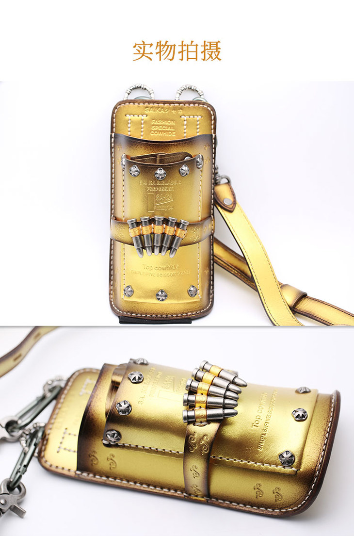 金色限量 SAKA/日本原装/牛皮/个性/真皮/金色/腰包/剪刀包/限量