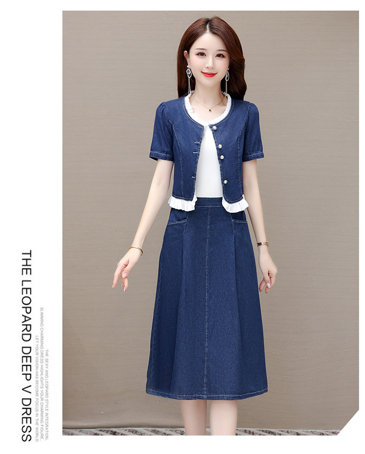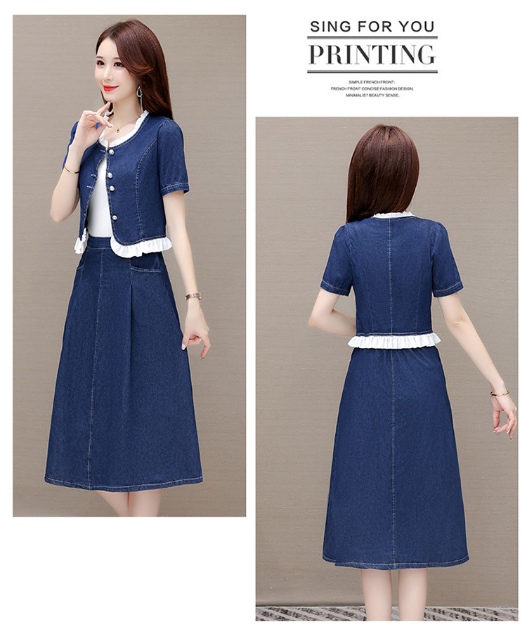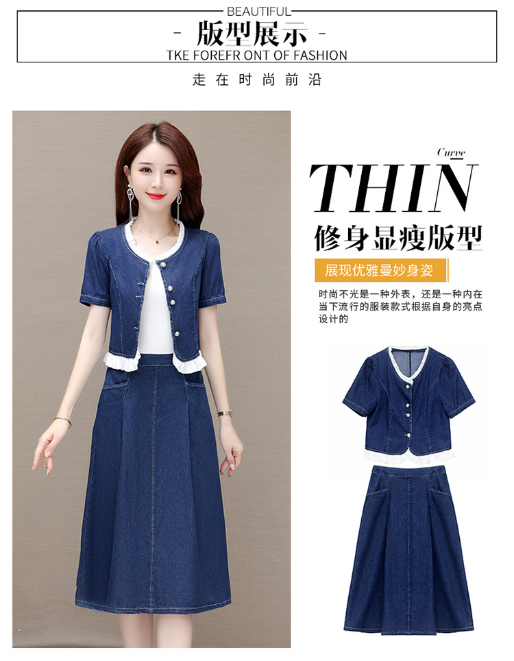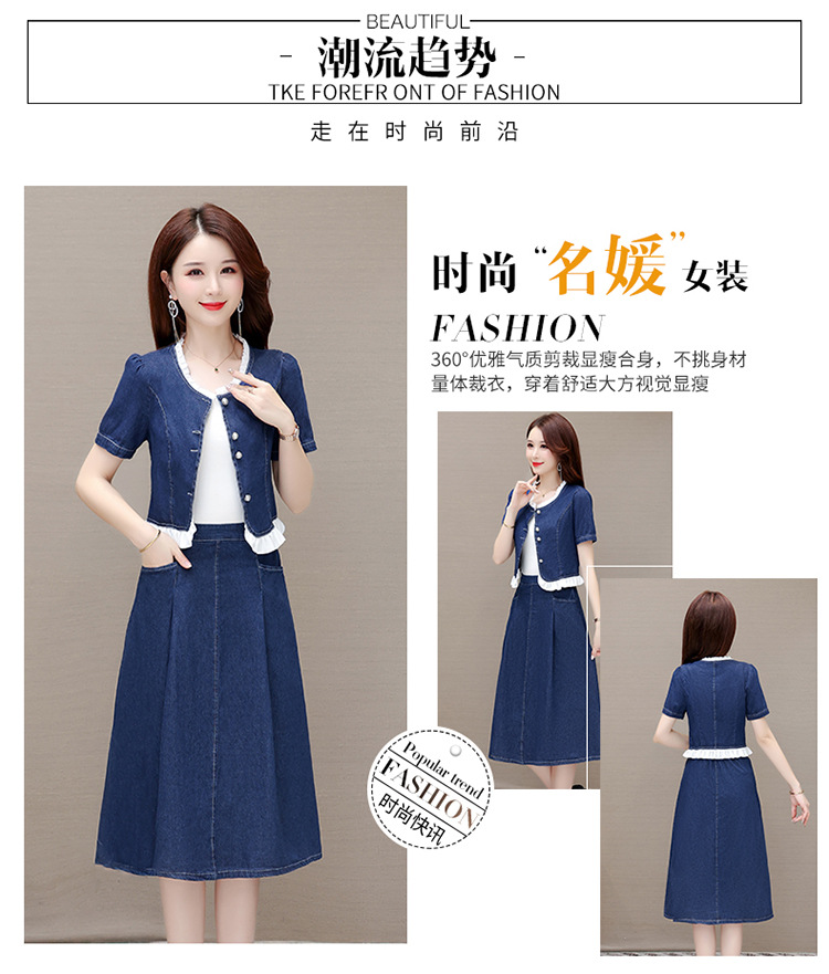 牛仔连衣裙两件套,夏装新款短袖小外套+高腰半身裙套装QYM-XY-23AD05-Y