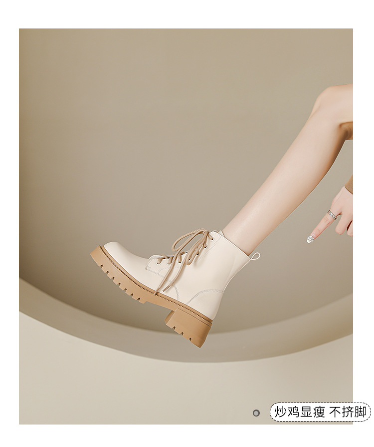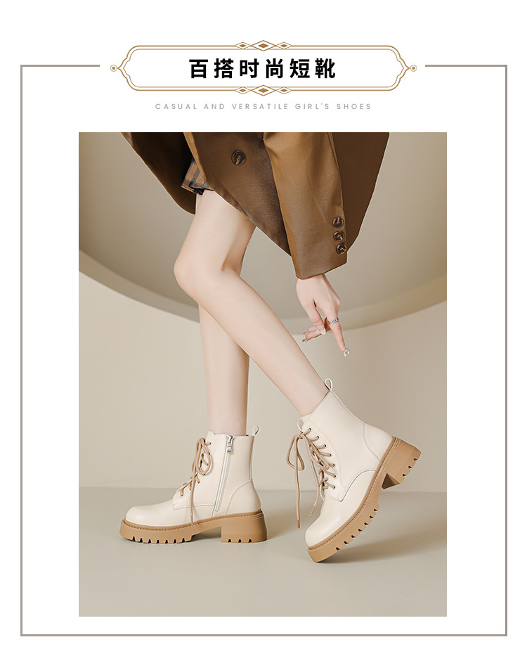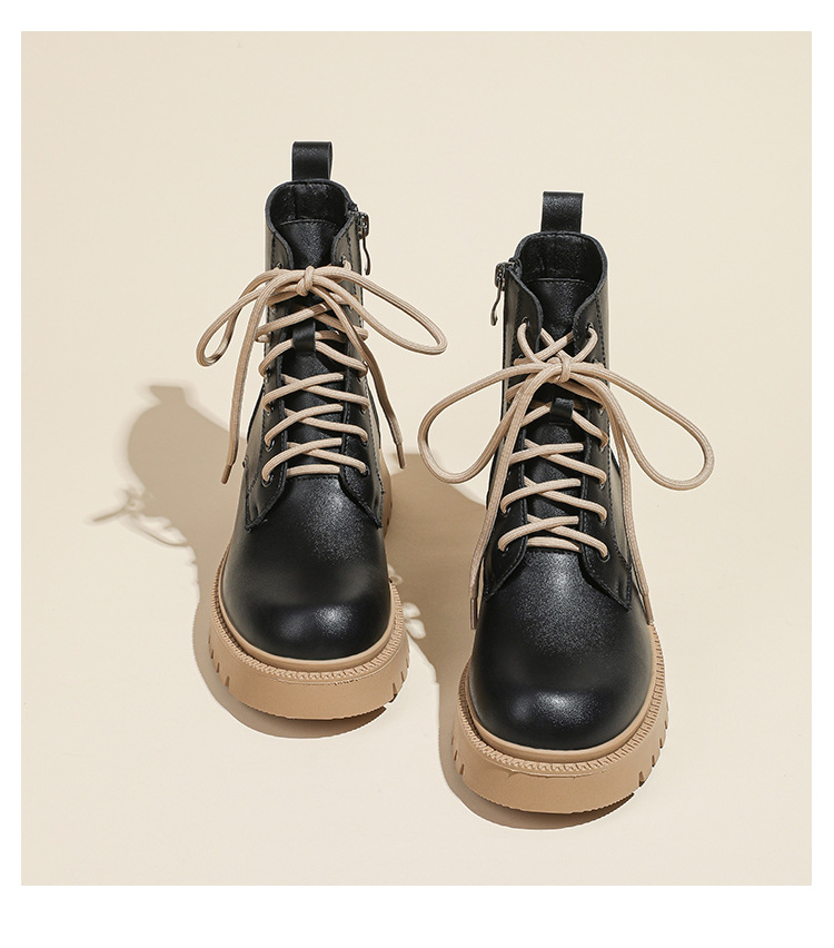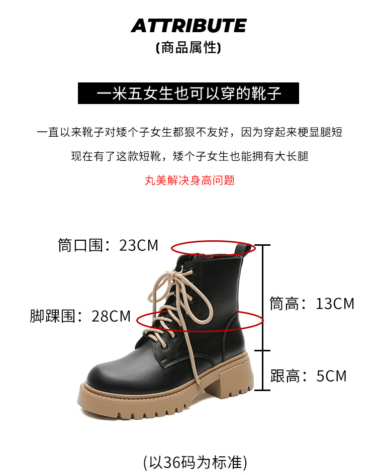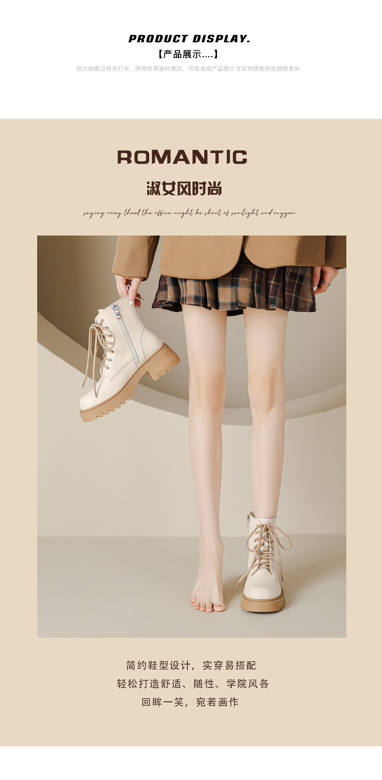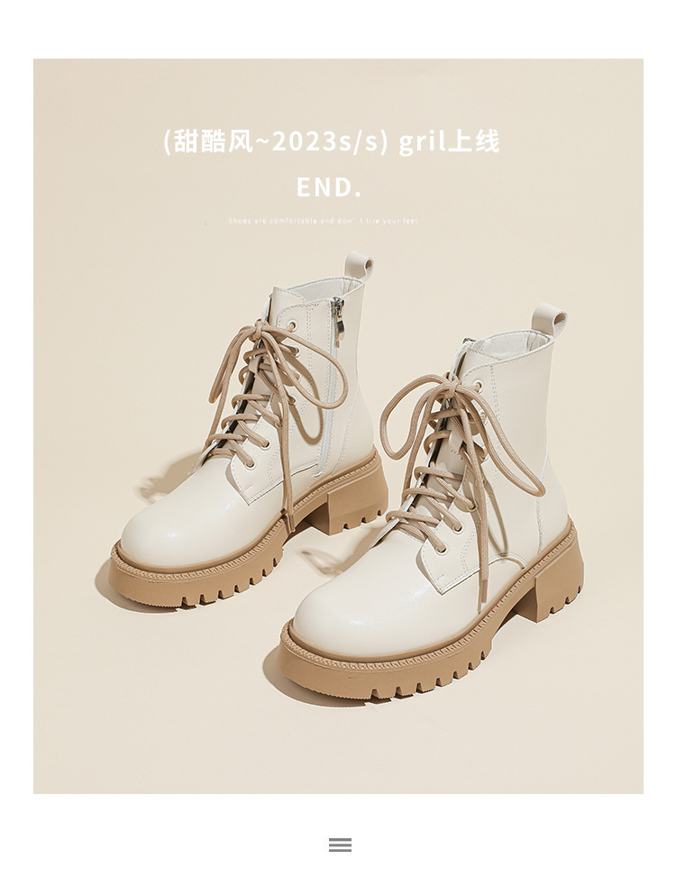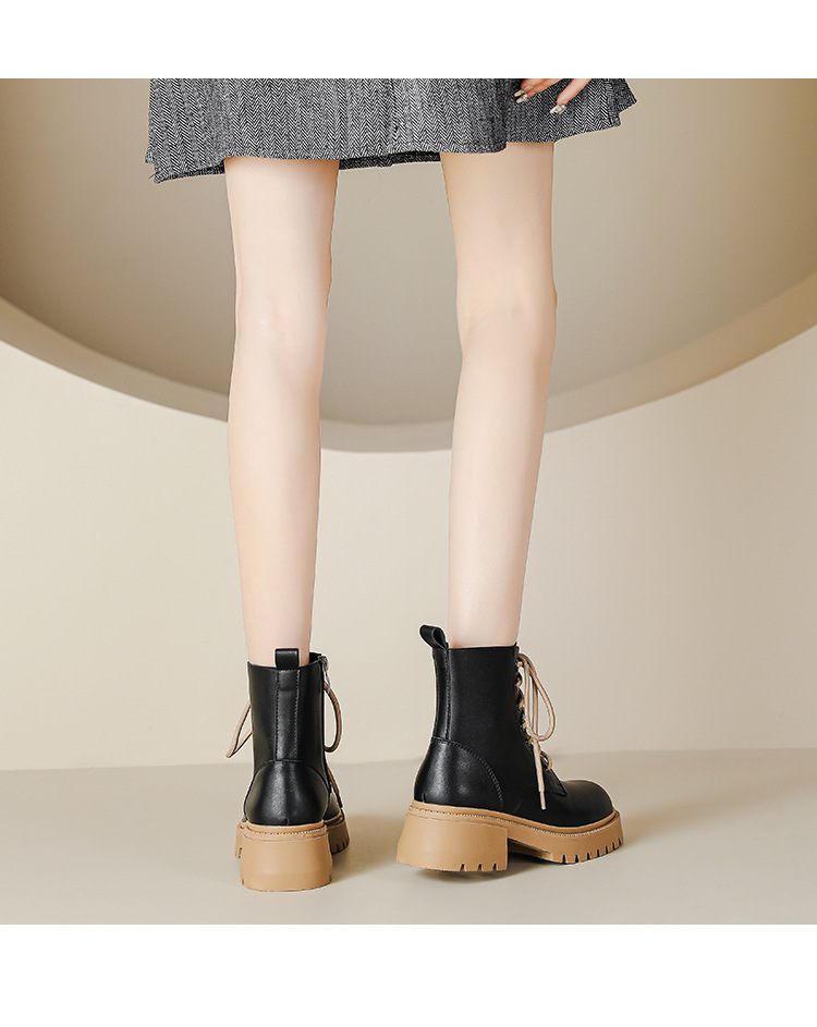 系带撞色马丁靴女2023秋冬新款短靴英伦风圆头厚底显瘦短筒靴子女