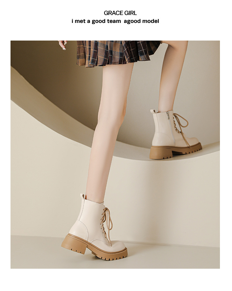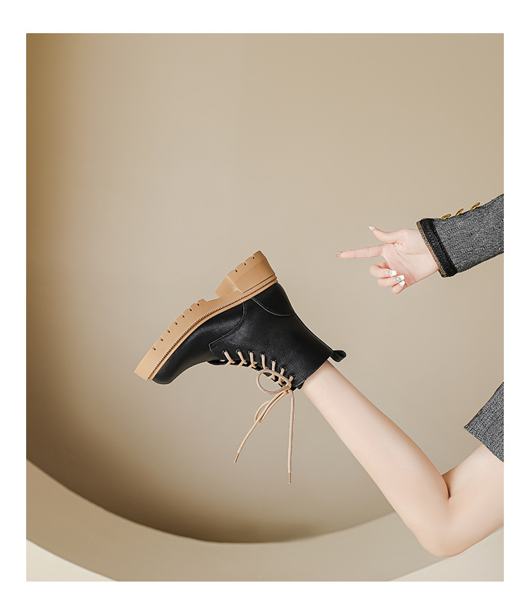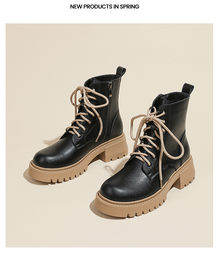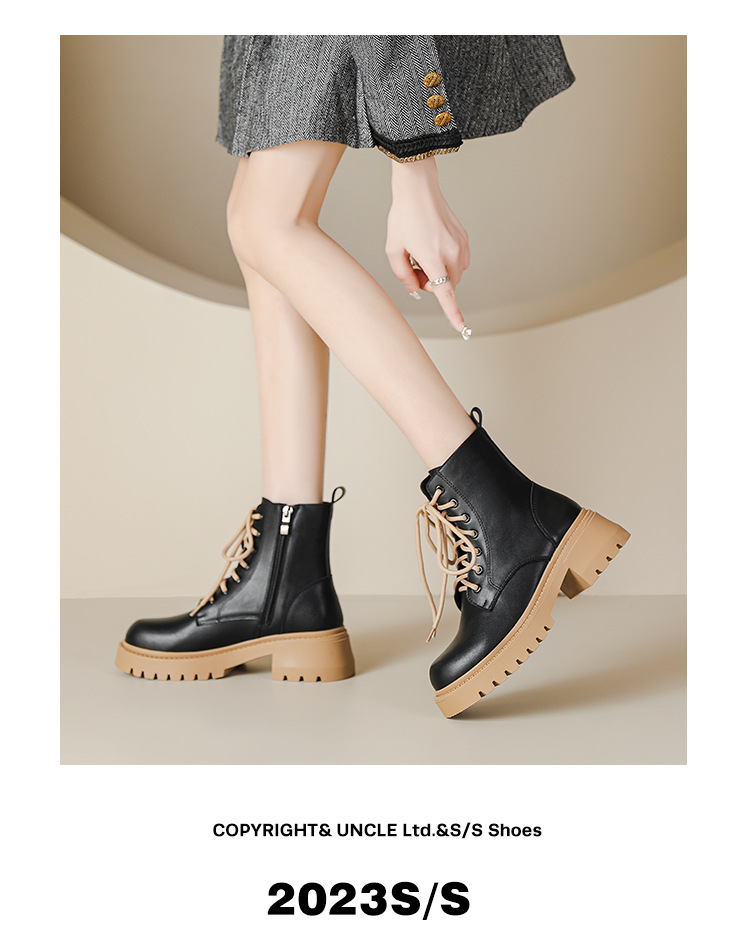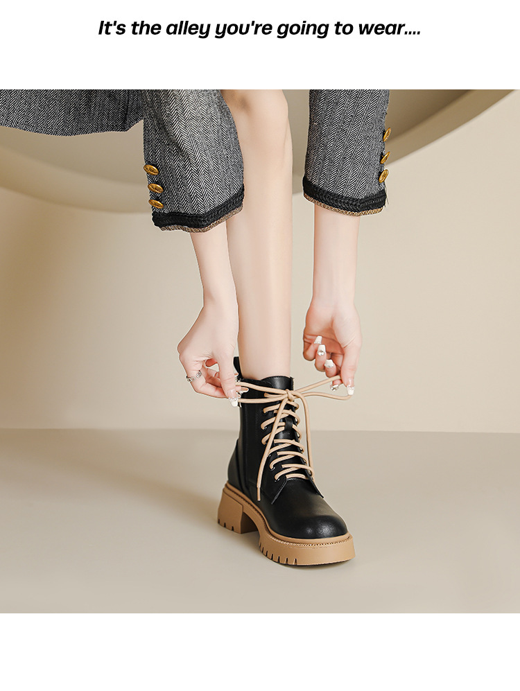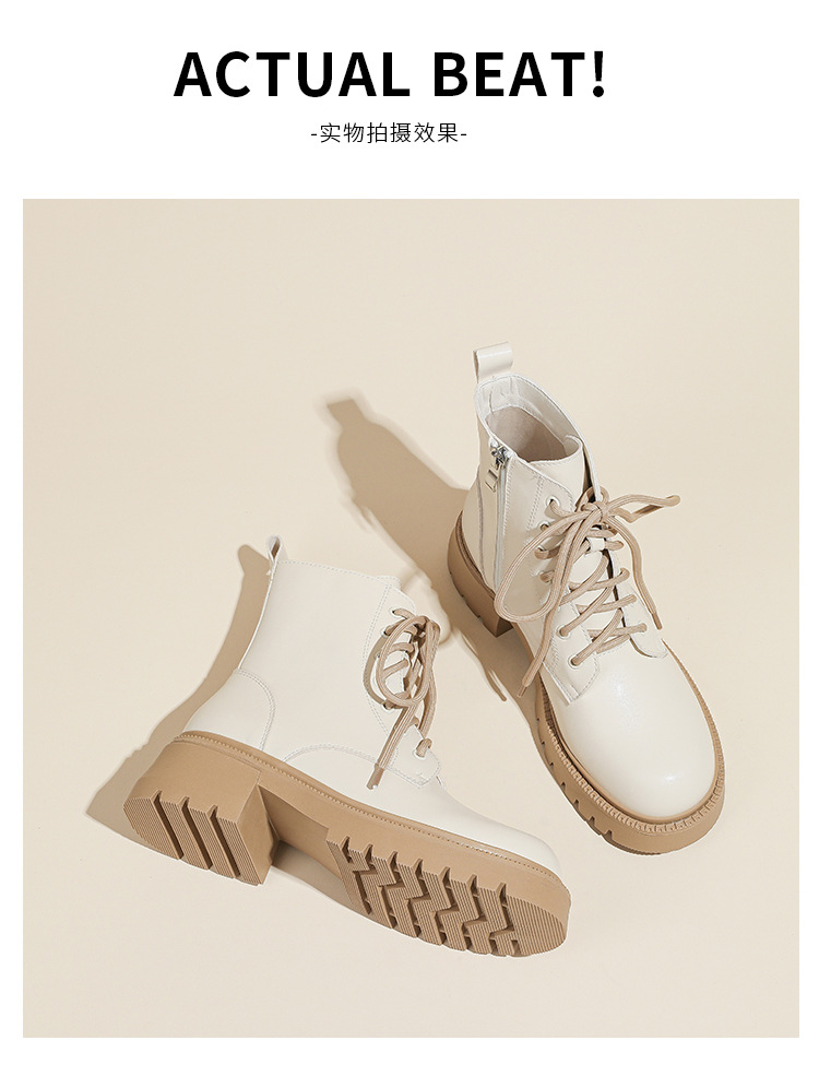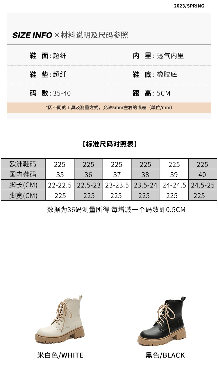 系带撞色马丁靴女2023秋冬新款短靴英伦风圆头厚底显瘦短筒靴子女
