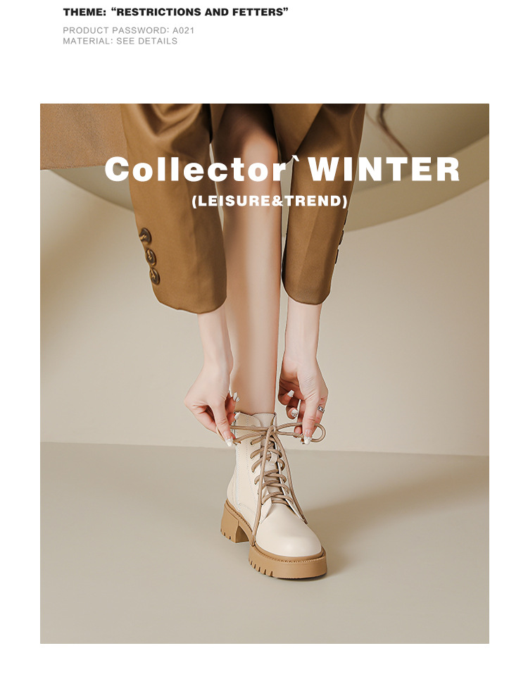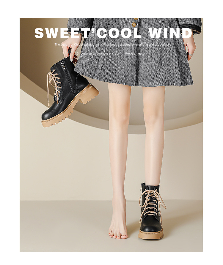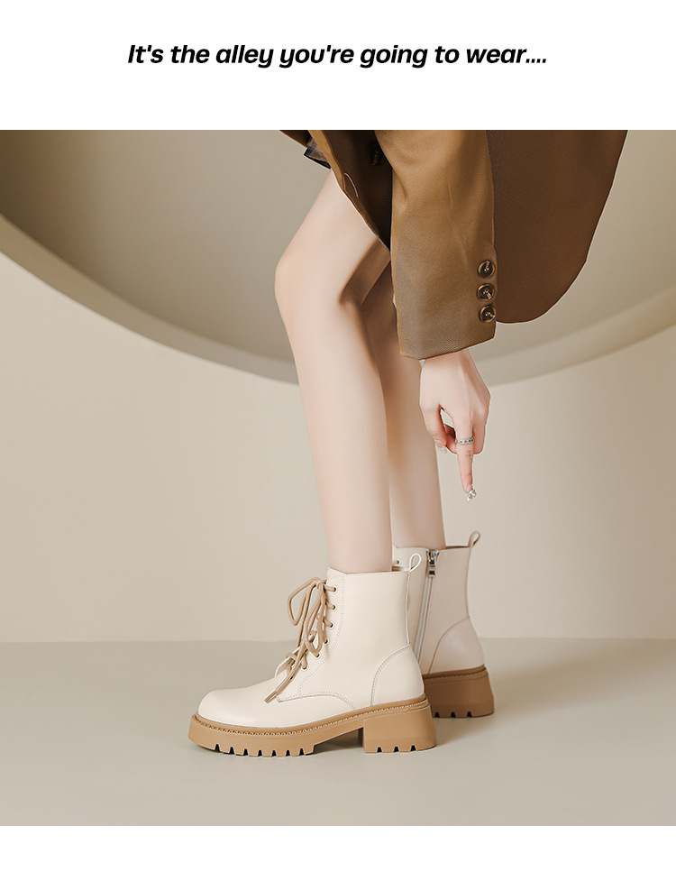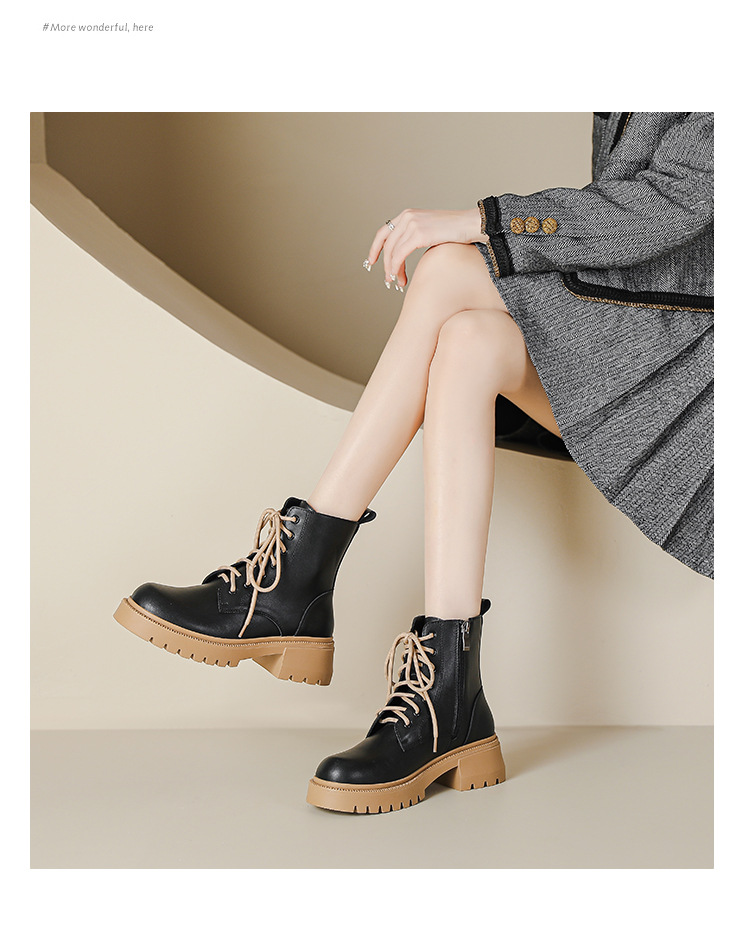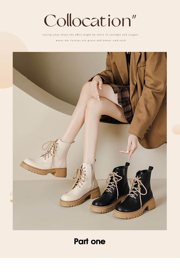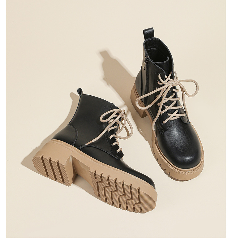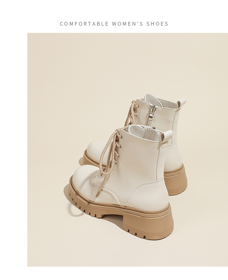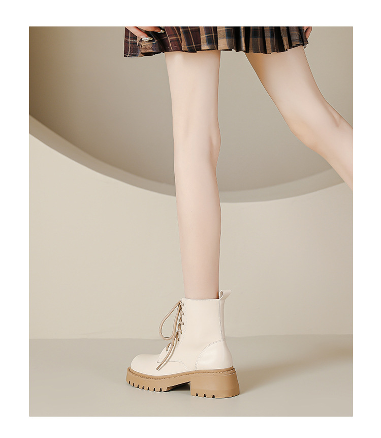系带撞色马丁靴女2023秋冬新款短靴英伦风圆头厚底显瘦短筒靴子女