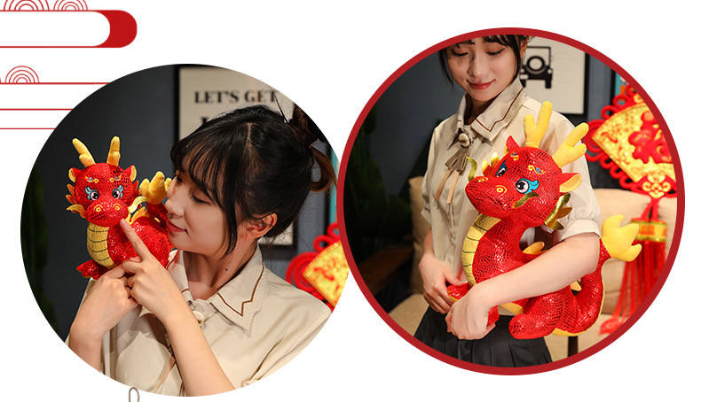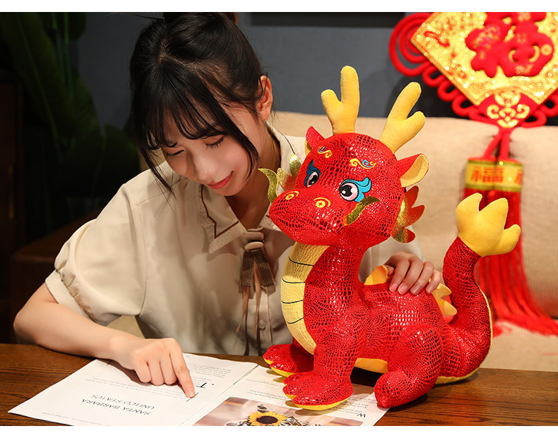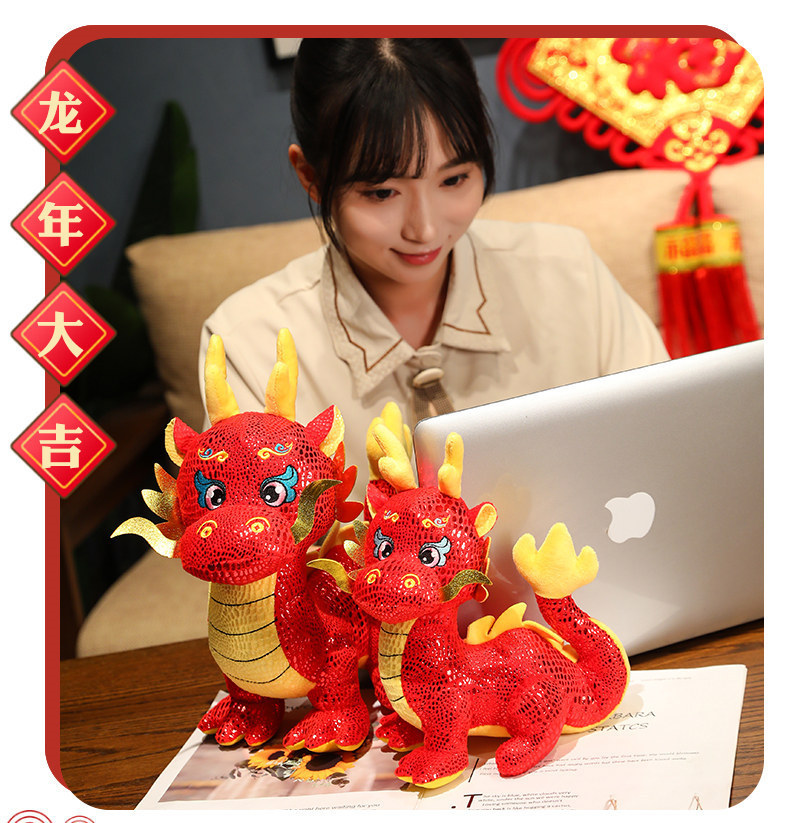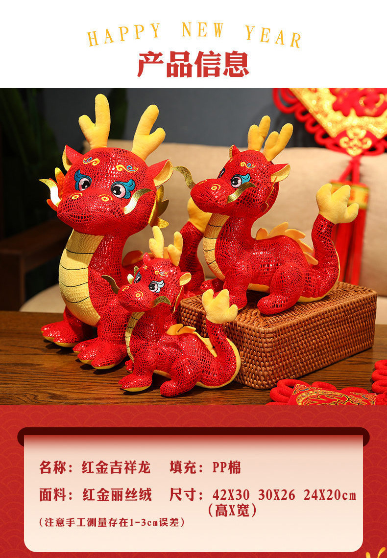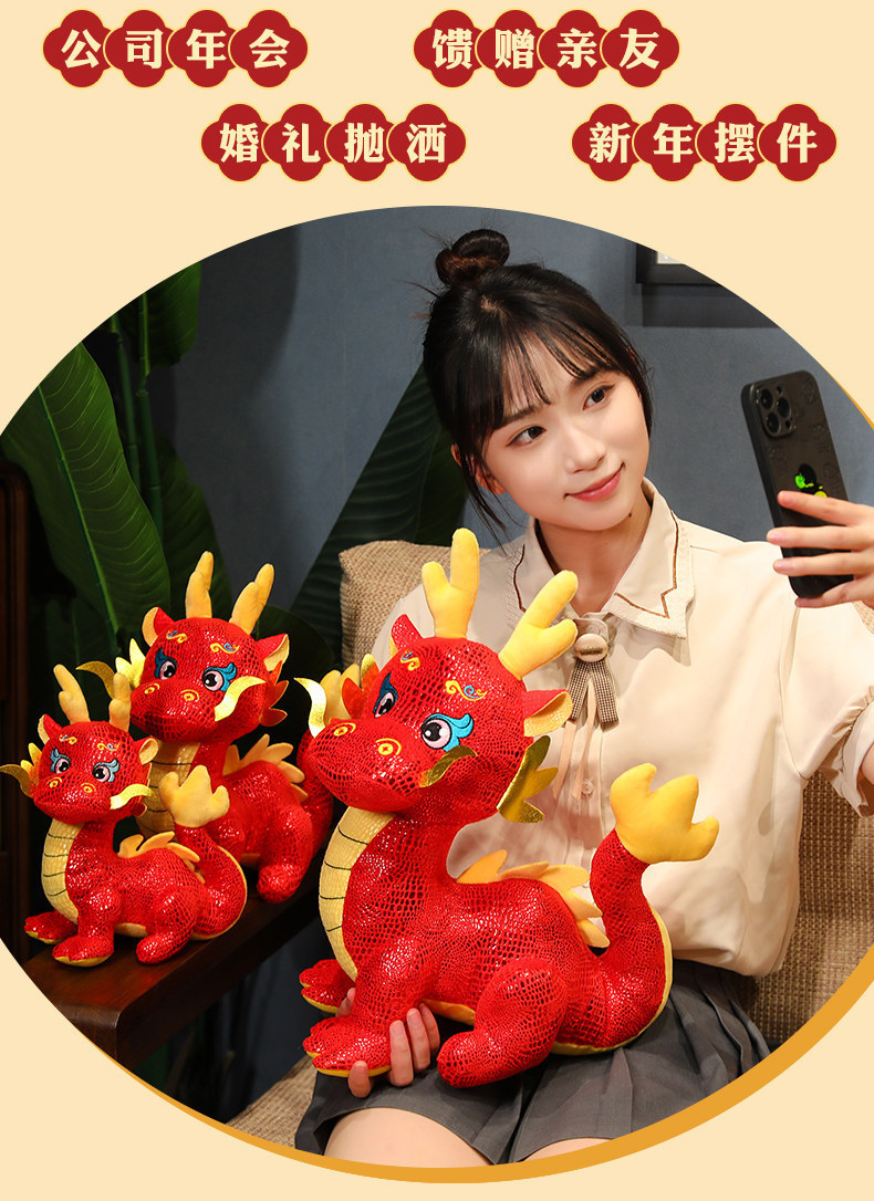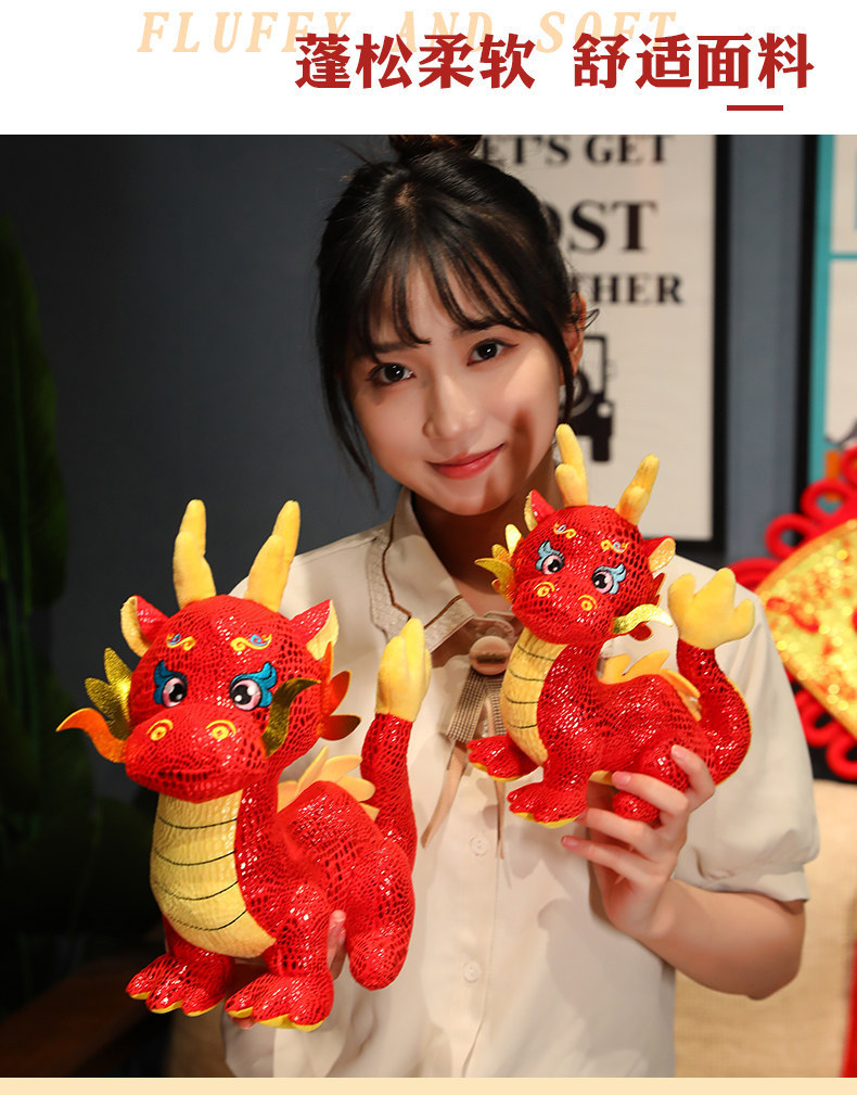 【可爱造型,亲肤细腻!】2024龙玩偶龙年吉祥物,公仔布娃娃生肖龙布偶本命年礼物毛绒玩具,不易变形,回弹性佳 手感顺滑 让人爱不释手
