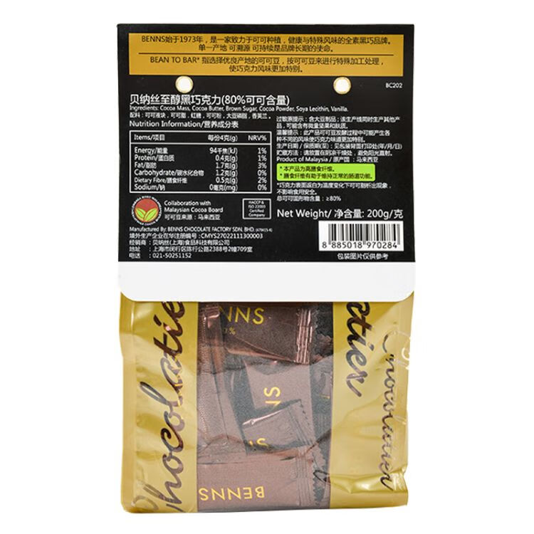 贝纳丝至醇黑巧克力(80%可可)200g/袋