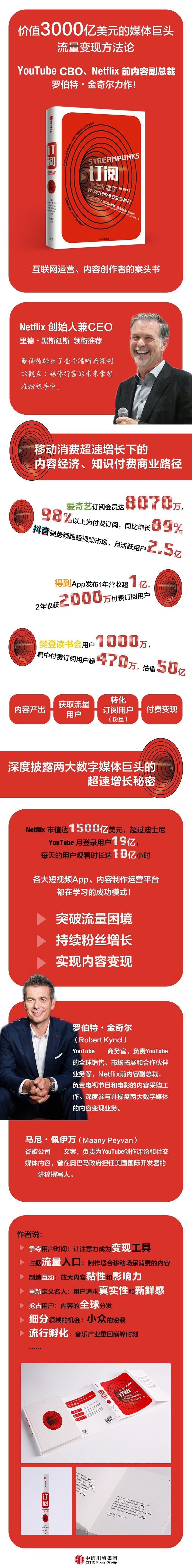 长期以来,媒体行业主要依赖三种收入来源:广告、交易和订阅。而订阅服务在智能手机的推动下得到了迅猛发展,已经成为移动经济的商业模式。YouTube首席商务官、Netflix前内容副总裁,深度拆解两大媒体巨头的超速增长秘密和流量变现方法论,给出了内容创新、突破流量困境、持续粉丝增长、实现内容变现的具体解决方案。这本书是了解数字时代新型商业模式的成功案例。