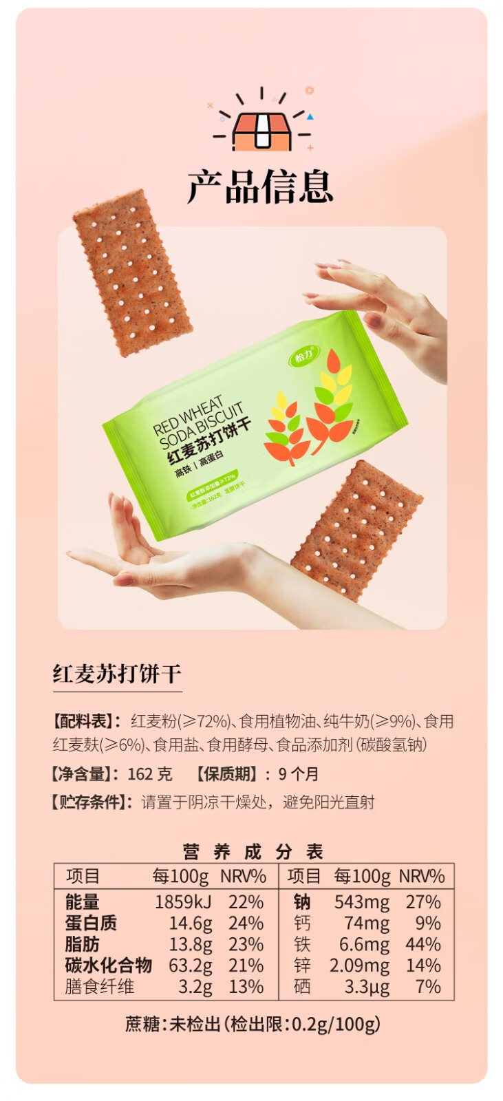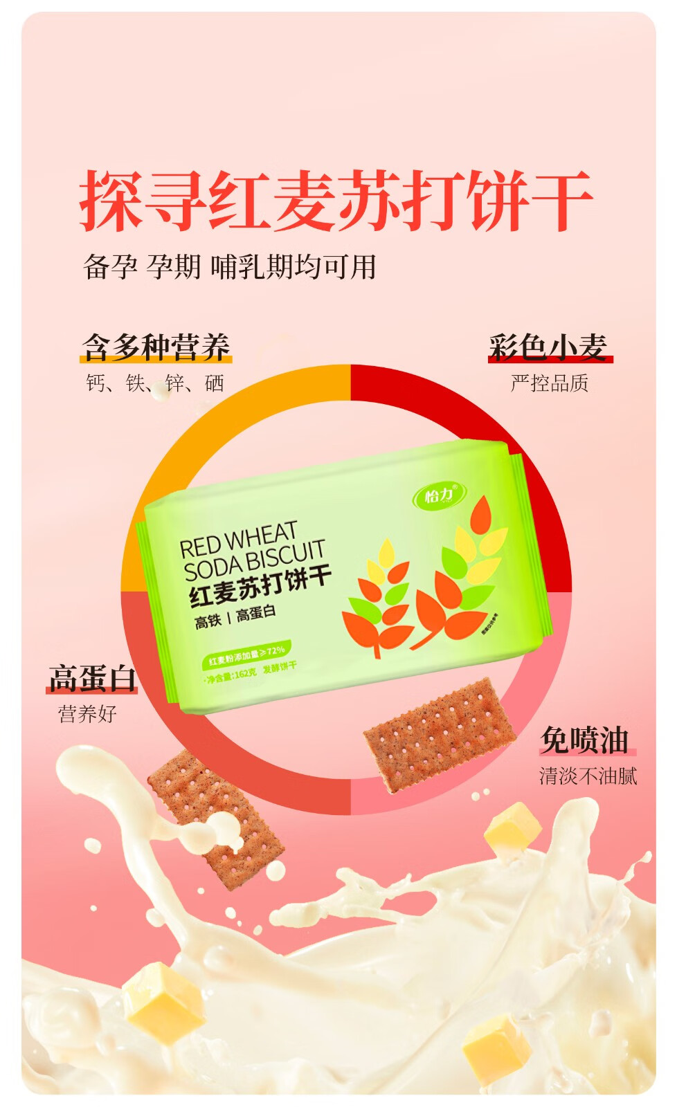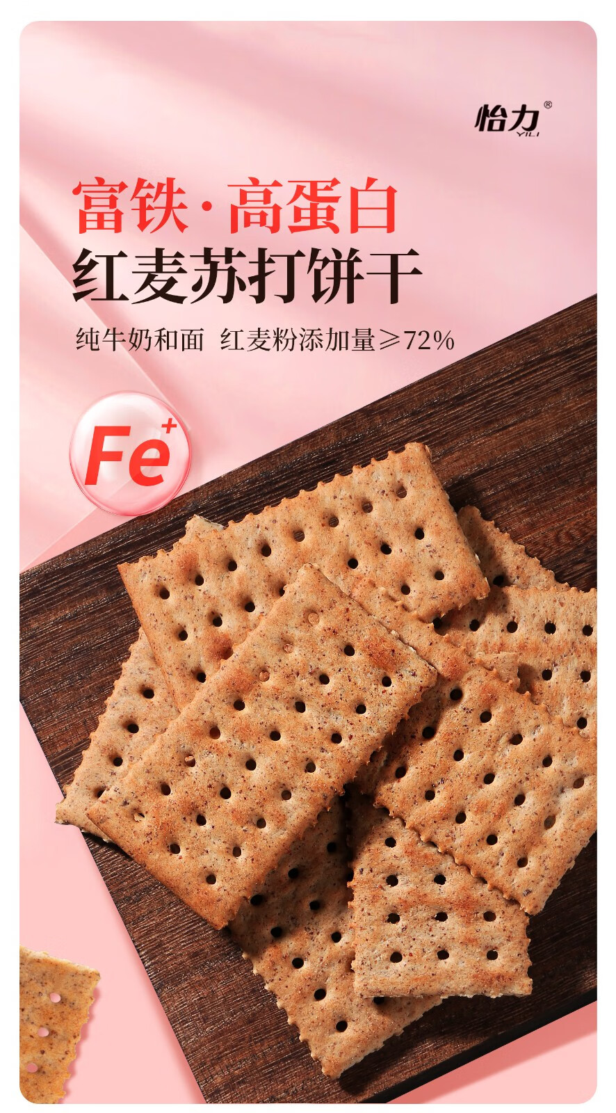 【控糖控卡食品】怡力红麦苏打饼干 红麦膳食纤维 轻食无负担 助力轻盈体态 优选红麦 自然粗粮 轻盈享受