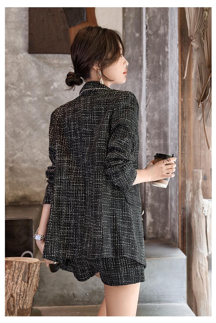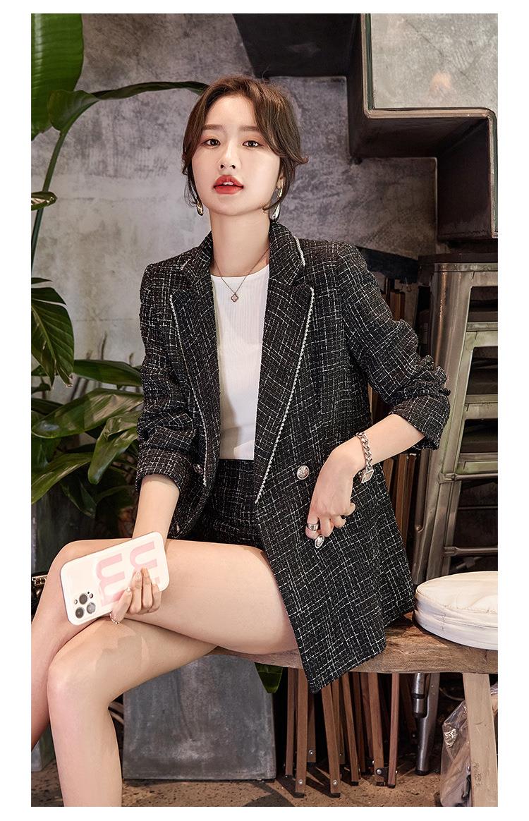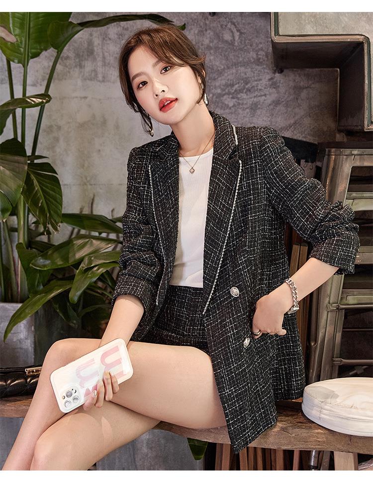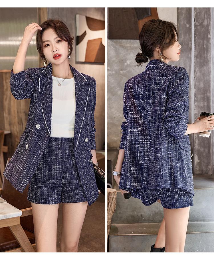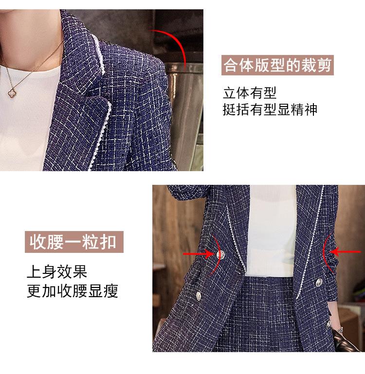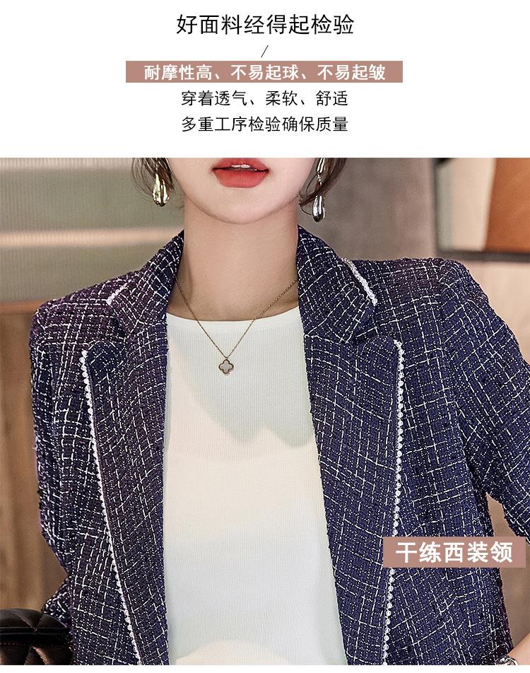 娜璐多 韩版条纹格子小西服套装女2023秋季新款气质通勤修身显瘦西装外套