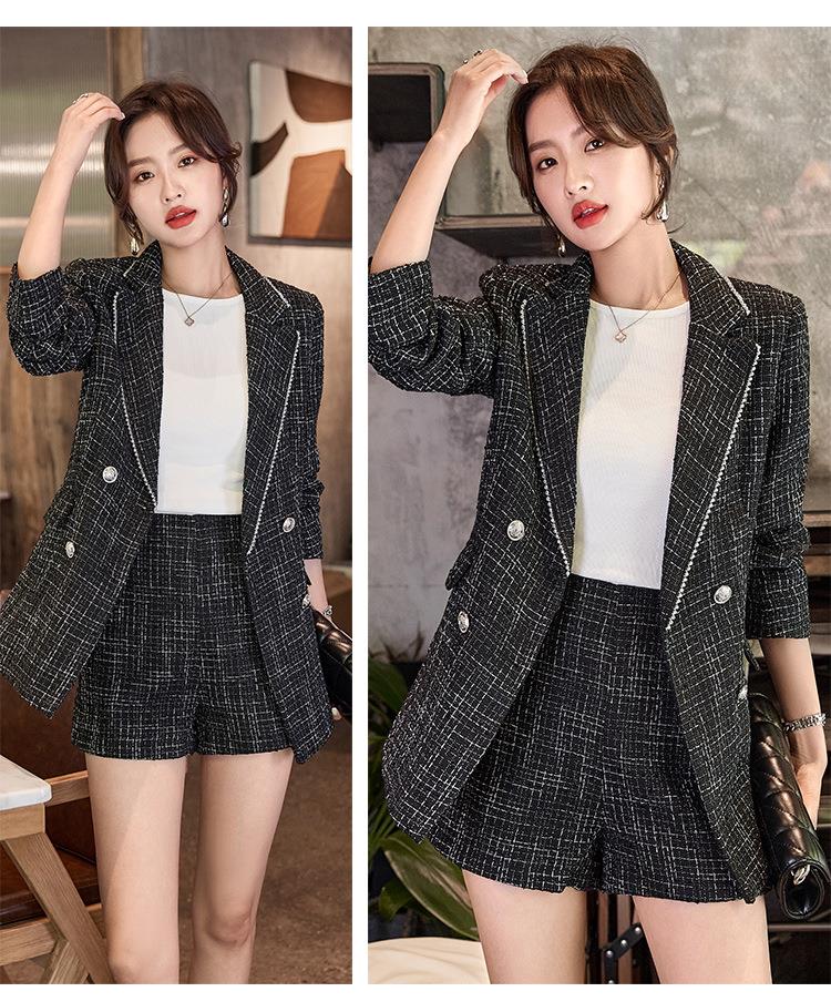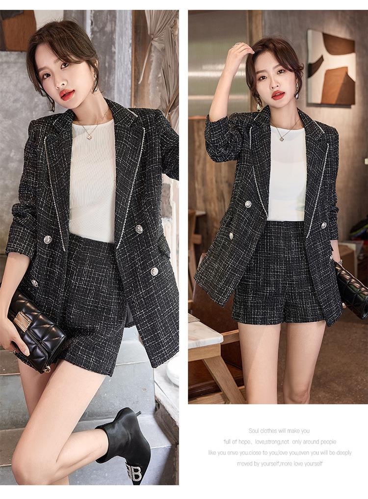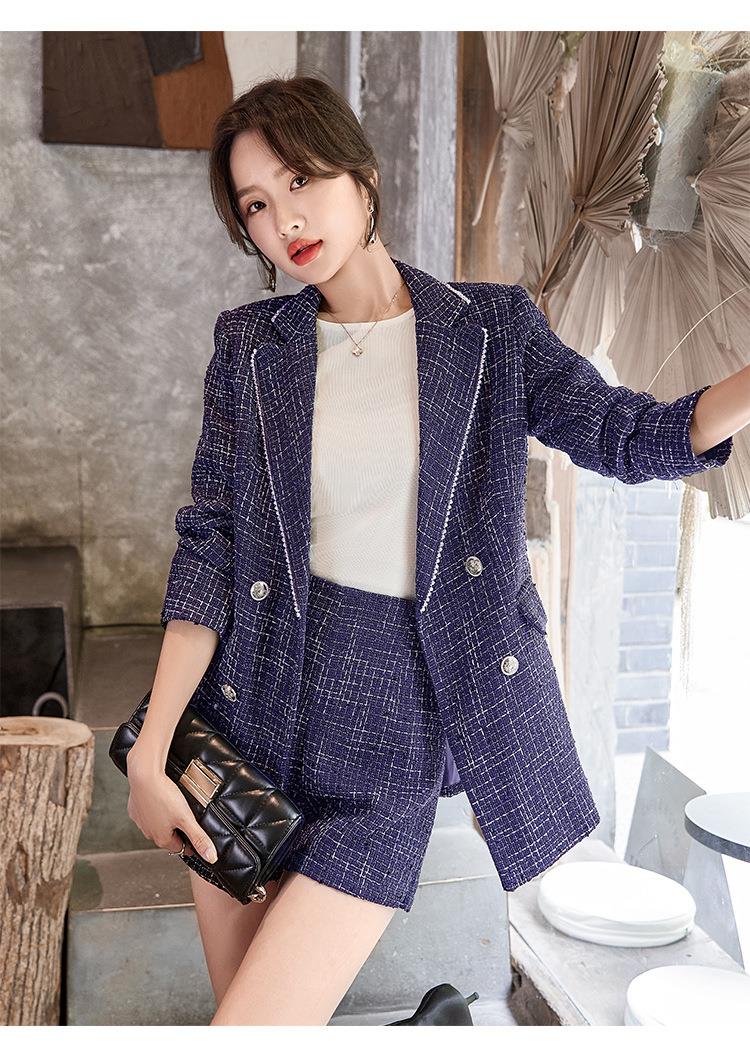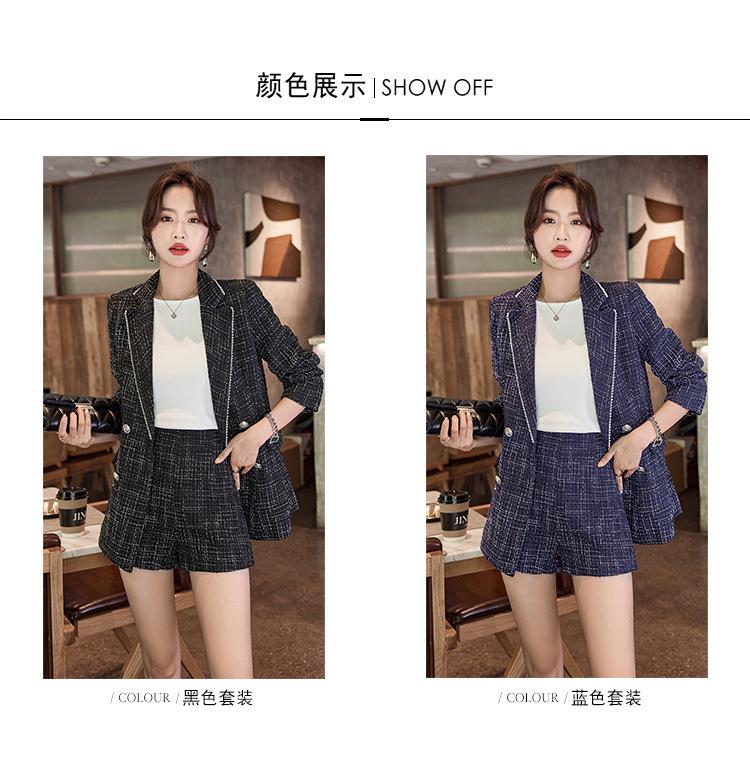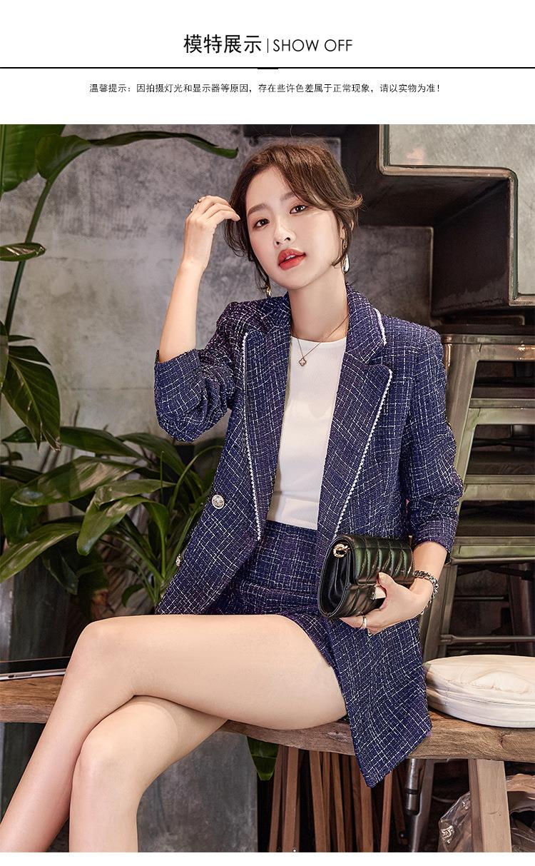 娜璐多 韩版条纹格子小西服套装女2023秋季新款气质通勤修身显瘦西装外套