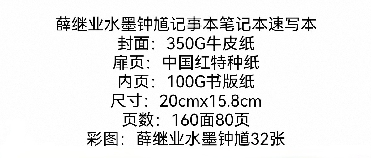 不仁斋薛继业水墨钟馗加厚牛皮纸简约30彩图钟馗笔记本速写本