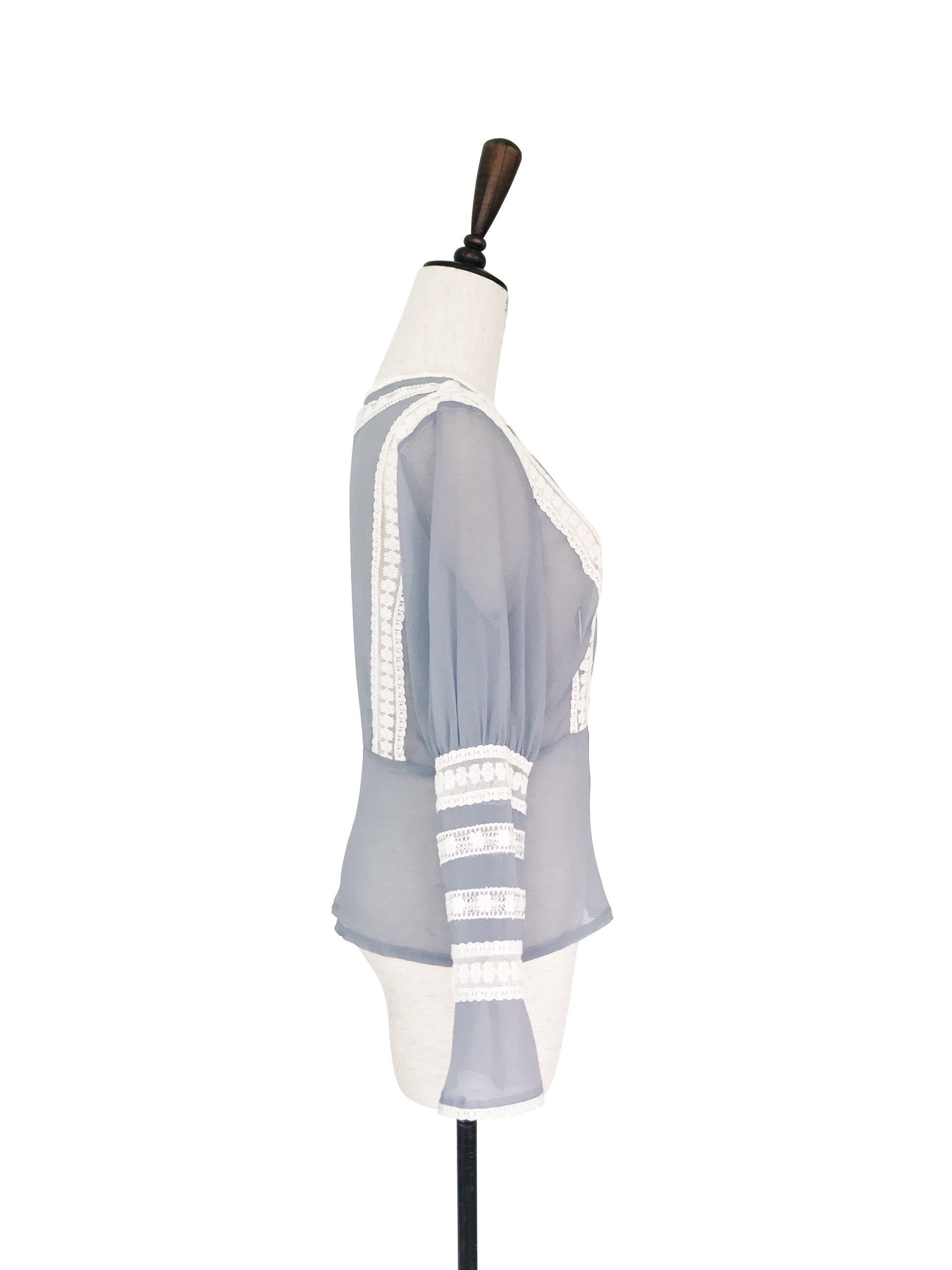 TYNVIE 拼接织花边长袖上衣-灰蓝色
