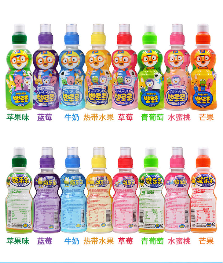韩国原装进口 啵乐乐儿童饮料 235ml 草莓味 苹果味 牛奶味