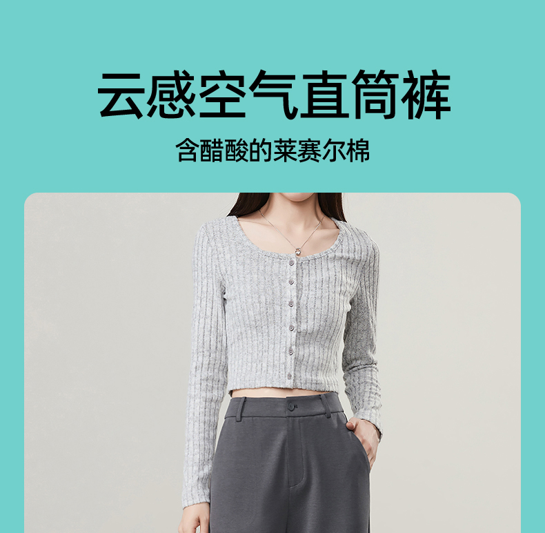 【即将下架!云感空气裤!亏本售】逸阳秋款窄版高腰垂感莱赛尔醋酸直筒裤子5781