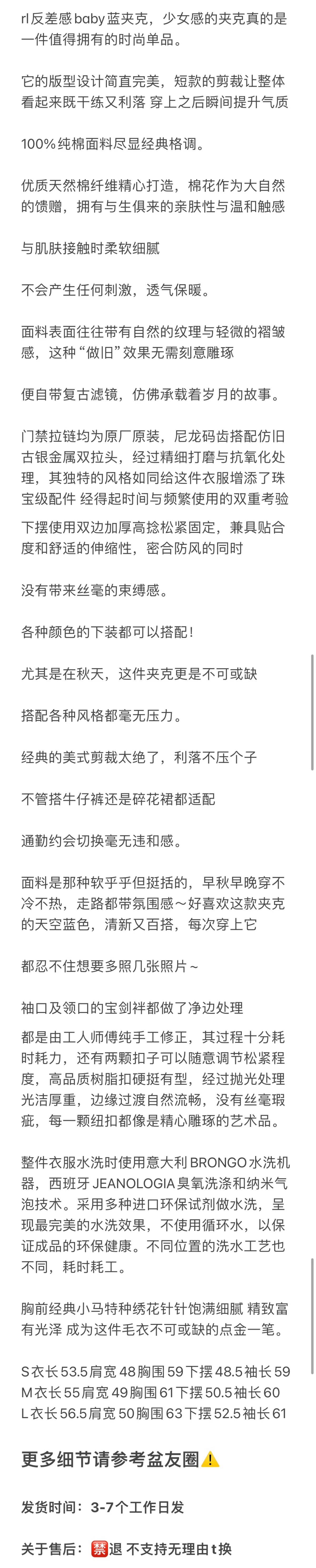 双11福利款 rl反差感baby蓝夹克 老干部夹克 复古永不过时 可休闲可正式