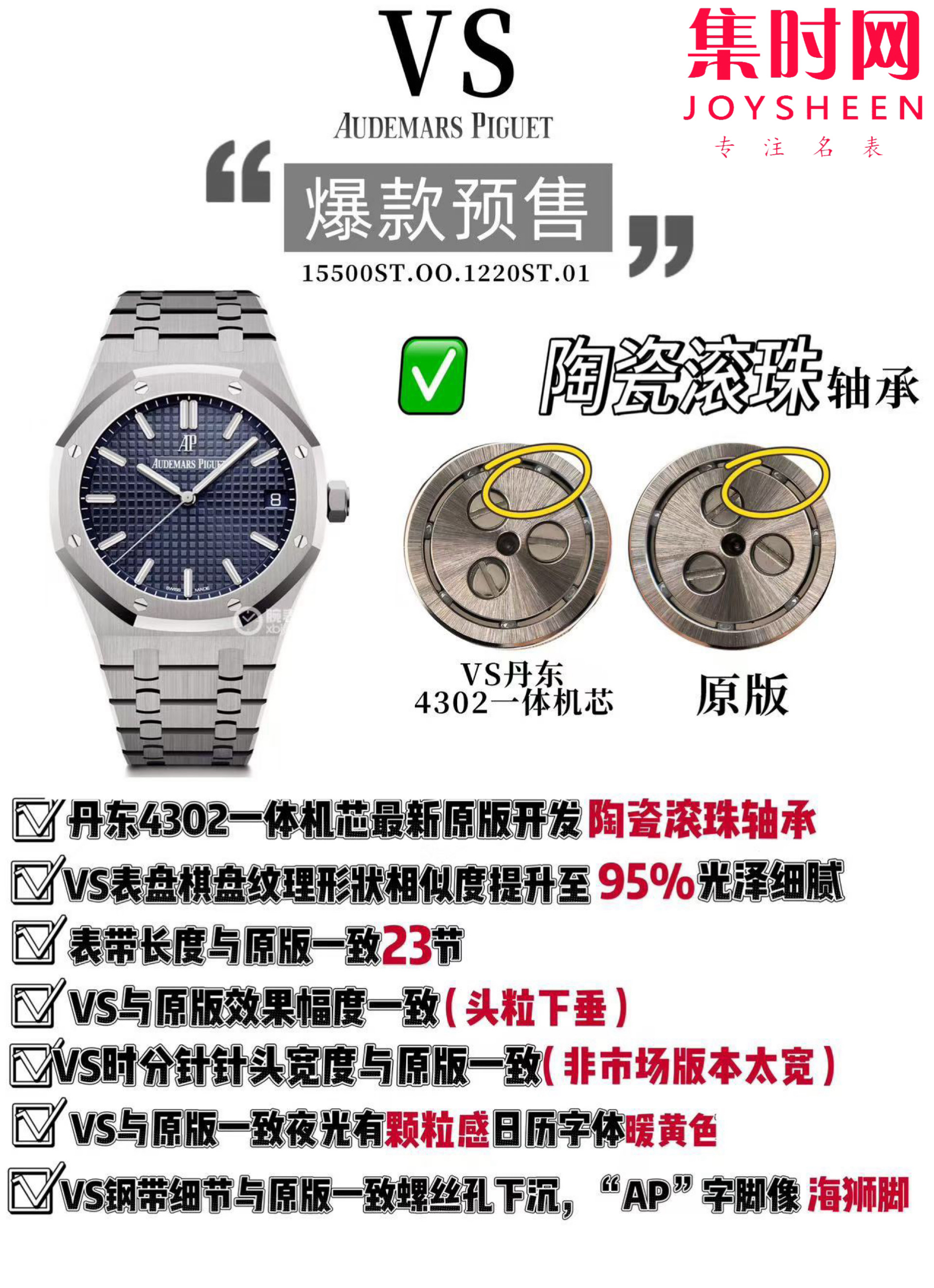 2️⃣VS表盘棋盘方格纹理形状相似度提升至原版的95%以上 光泽细腻