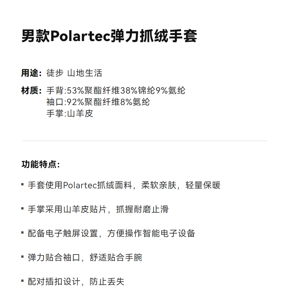 KAILAS凯乐石 男款Polartec弹力抓绒手套 KM2604102