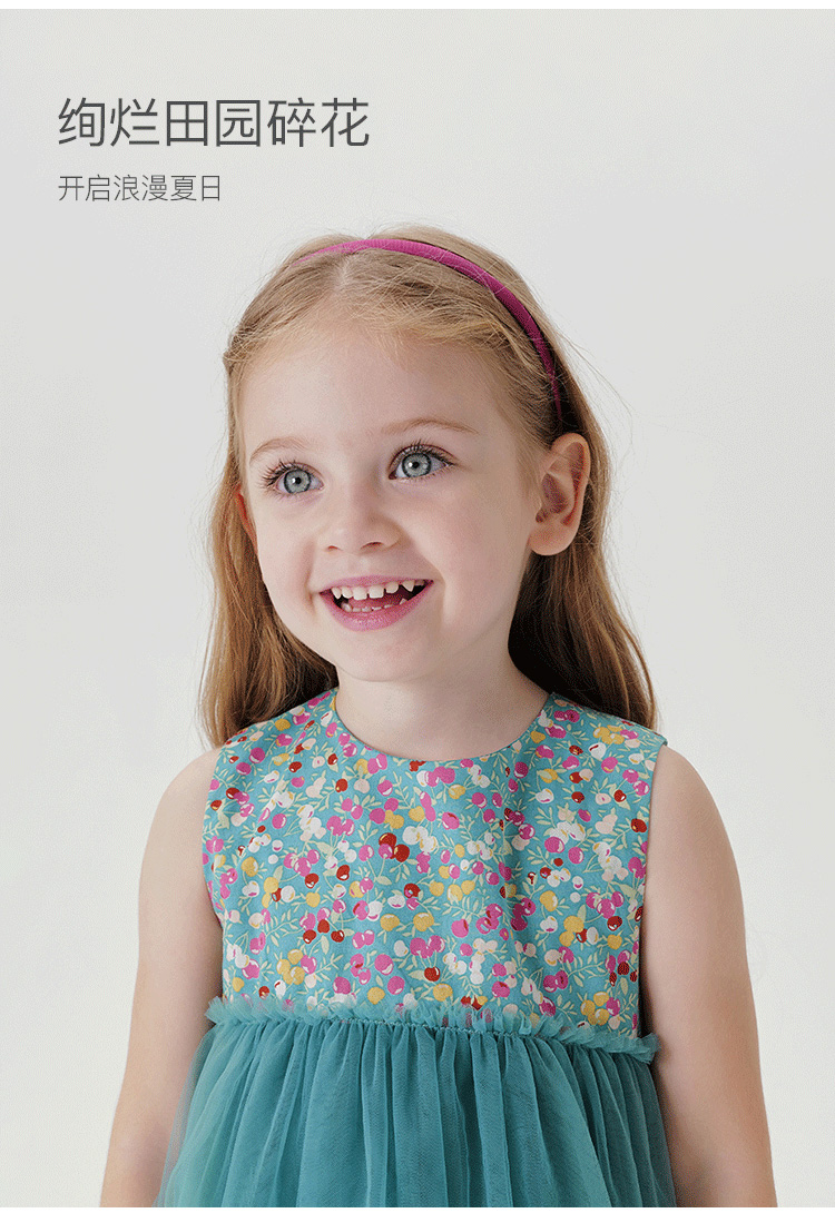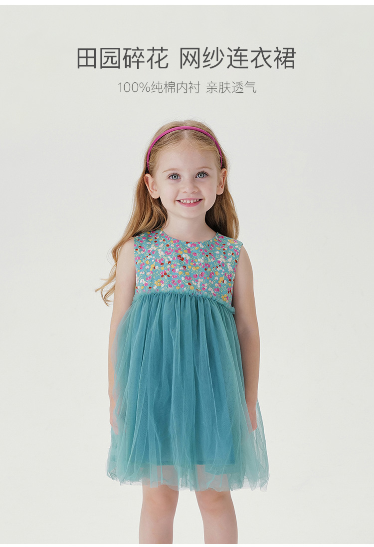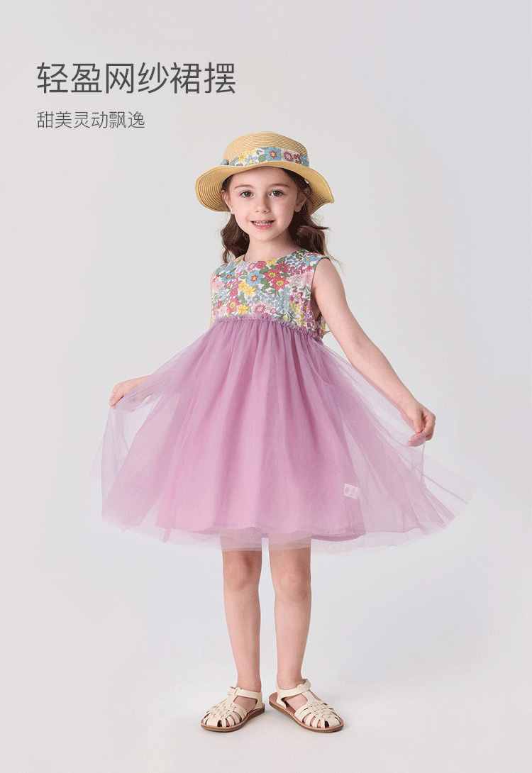 【马克珍妮 芦芙】夏装新款 女童清新碎花轻盈网纱裙230002