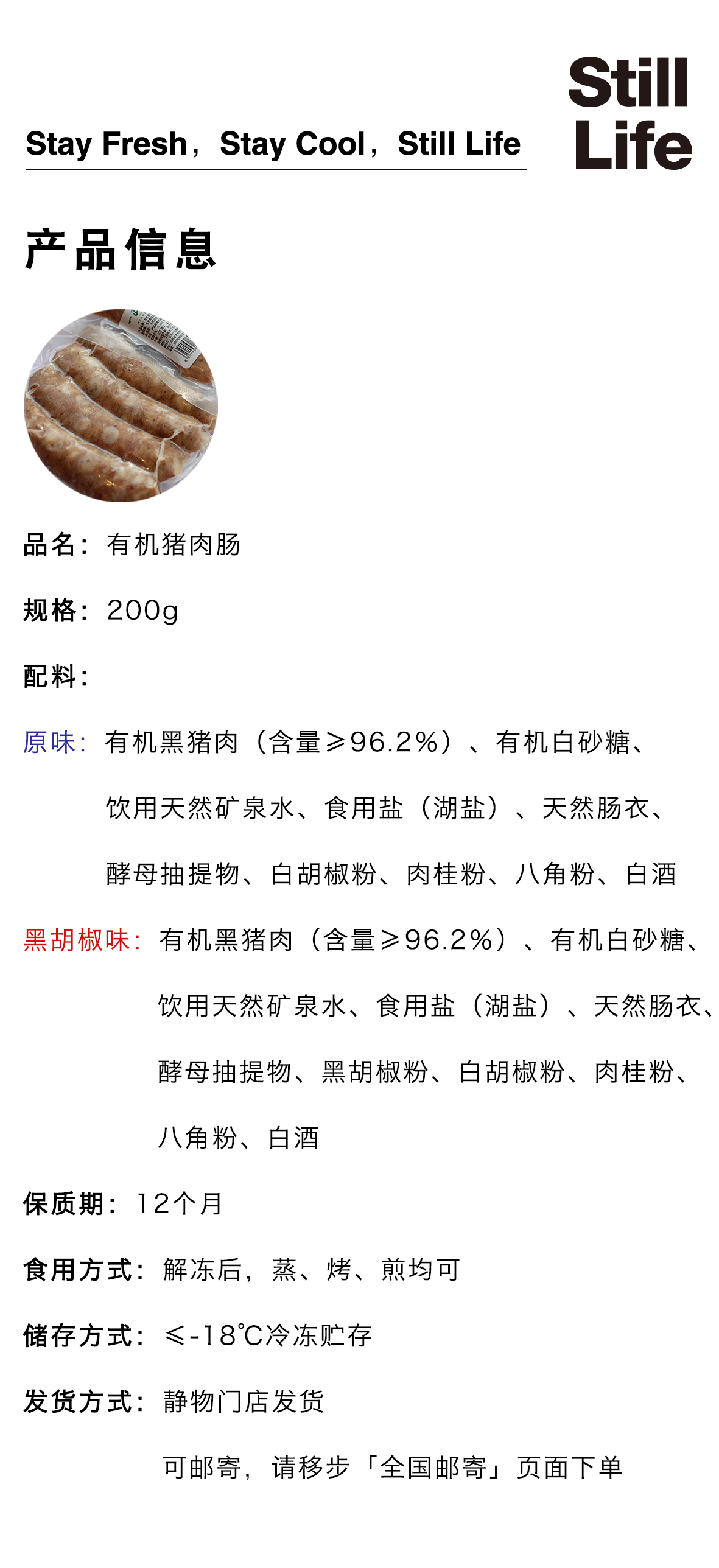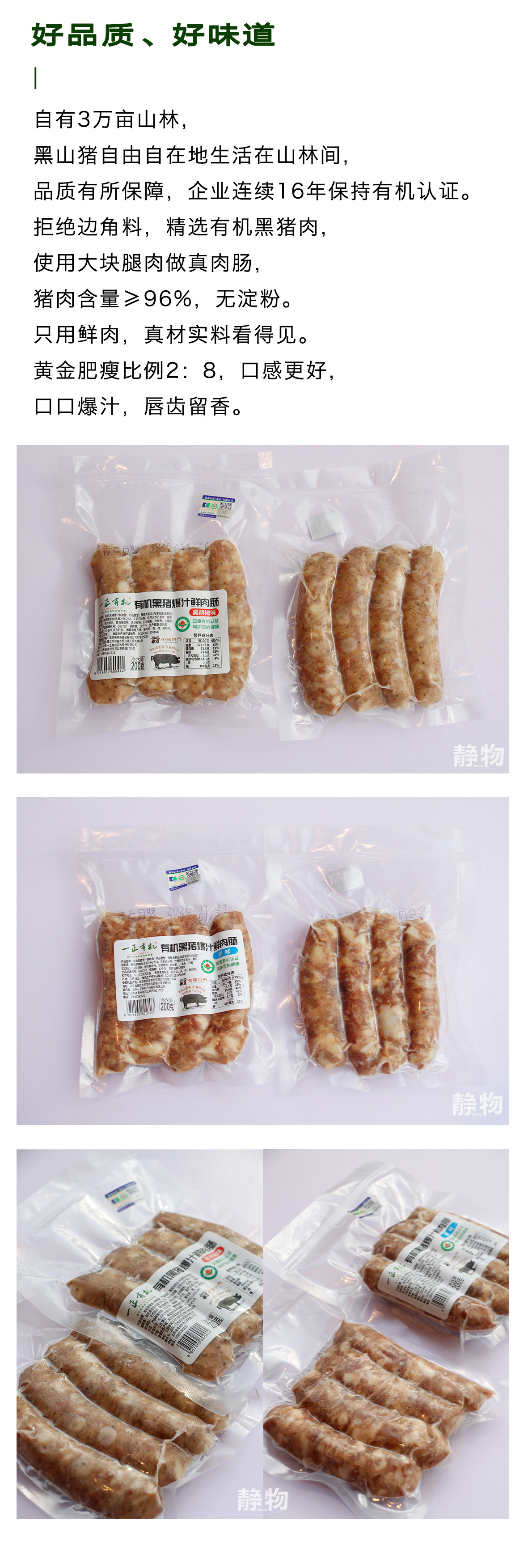 有机鲜肉肠200g|山东潍坊