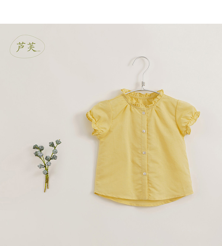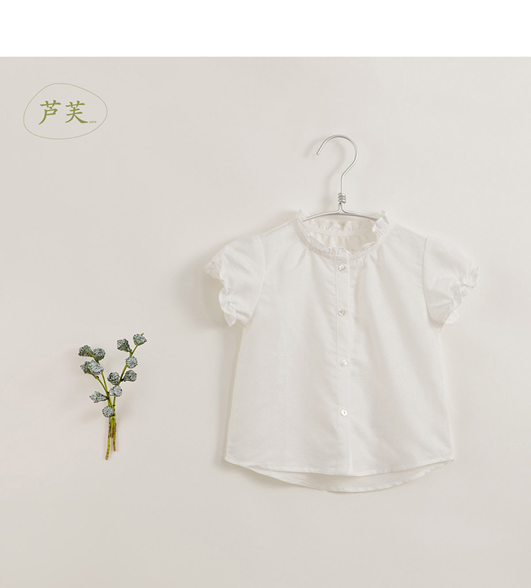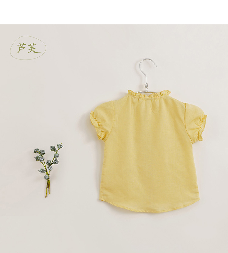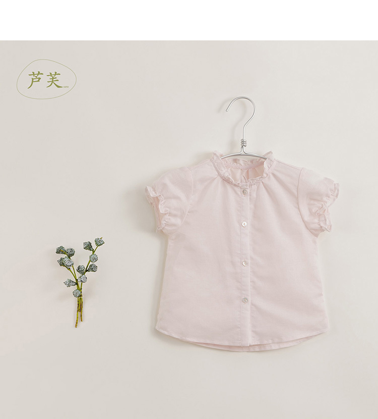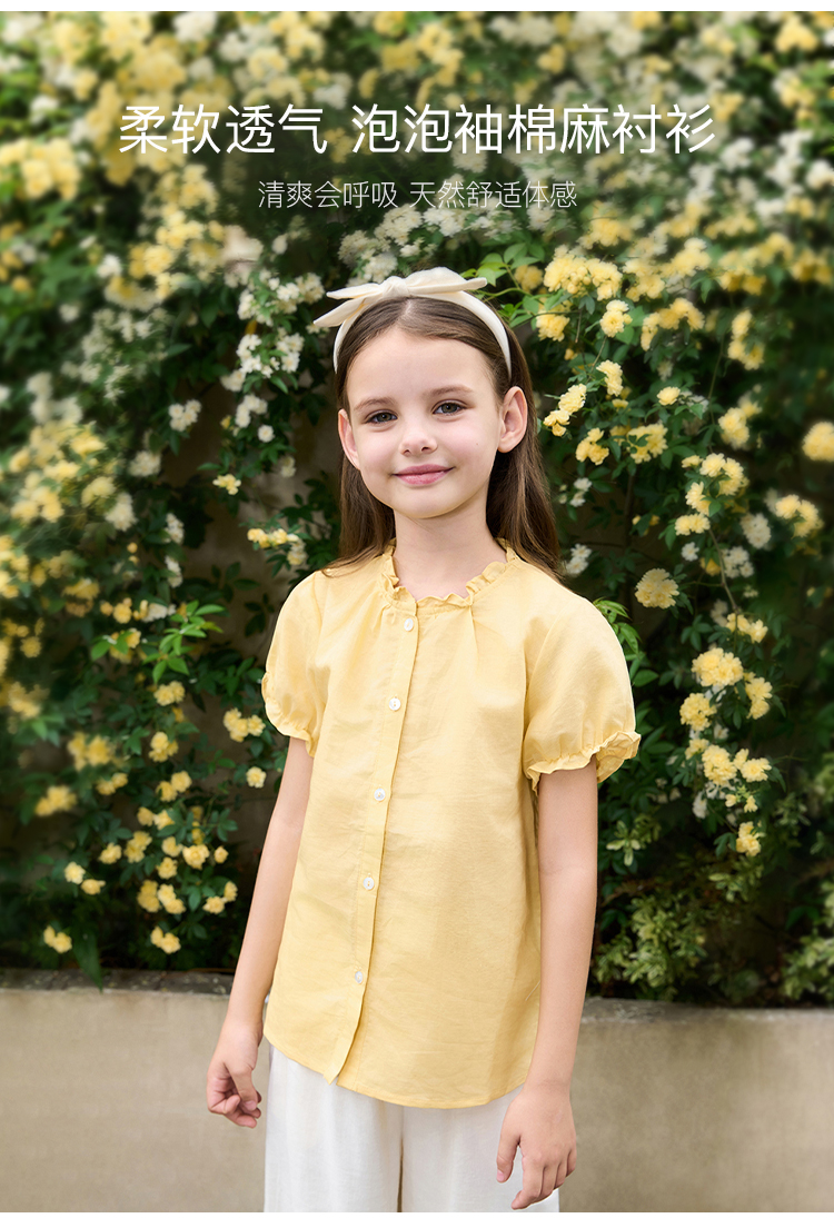 【马克珍妮 芦芙】夏装新款 女童泡泡袖透气棉麻衬衫230727