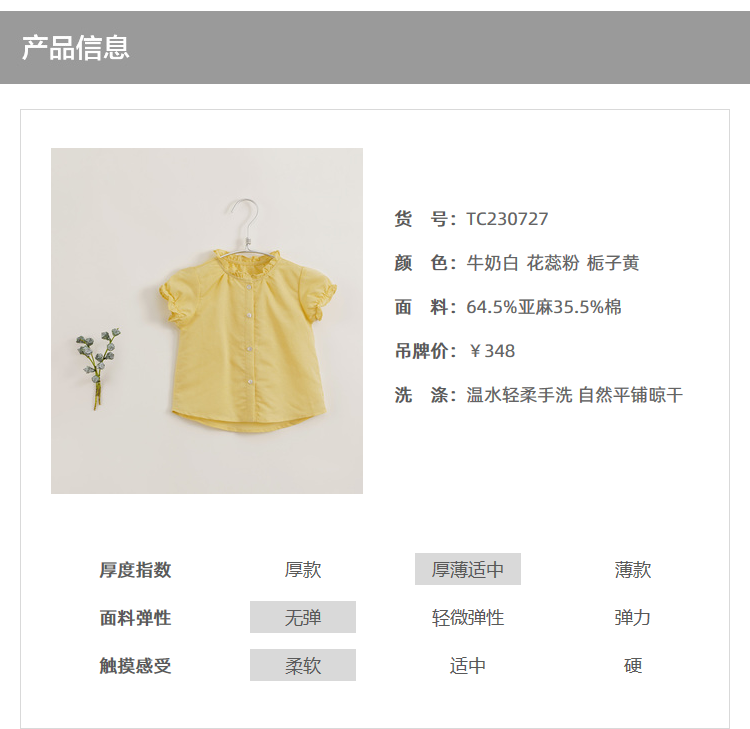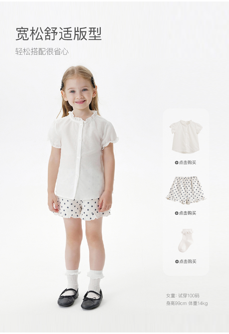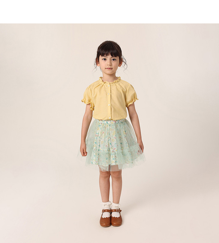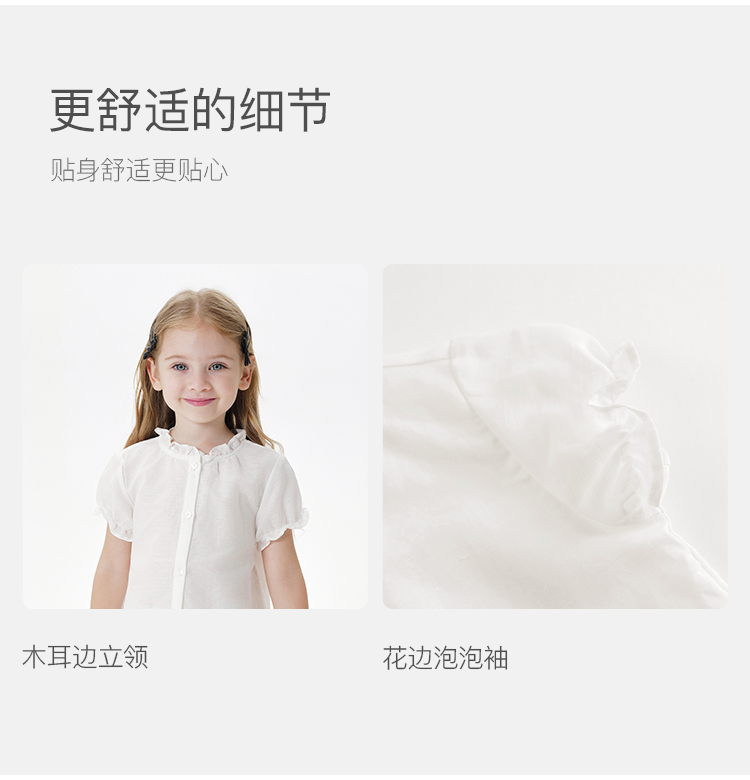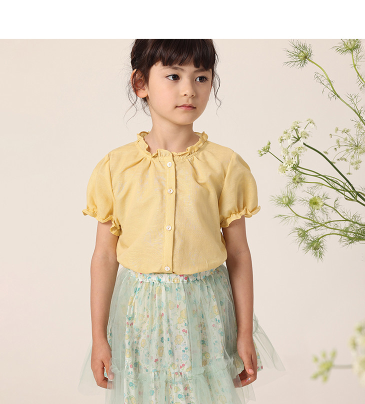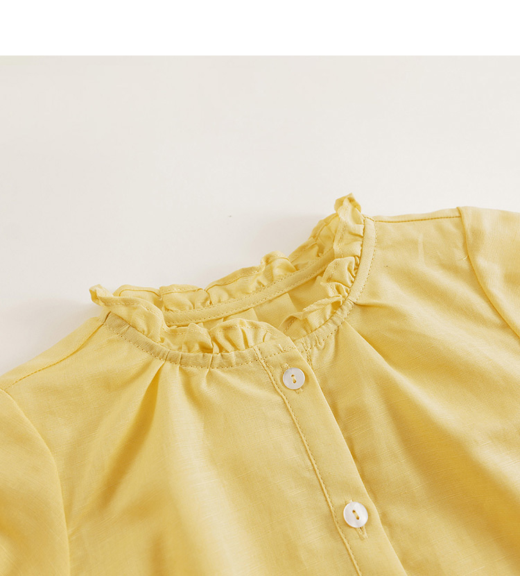 【马克珍妮 芦芙】夏装新款 女童泡泡袖透气棉麻衬衫230727
