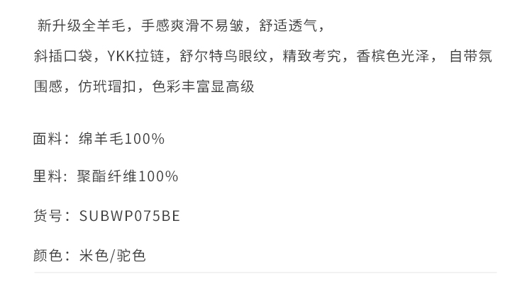callisto藏青羊毛混纺羽绒夹克 FSFED050C