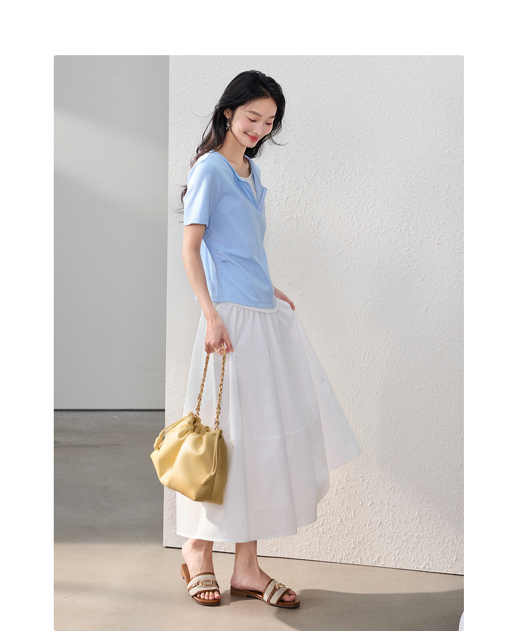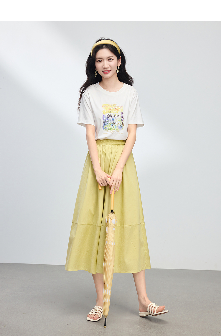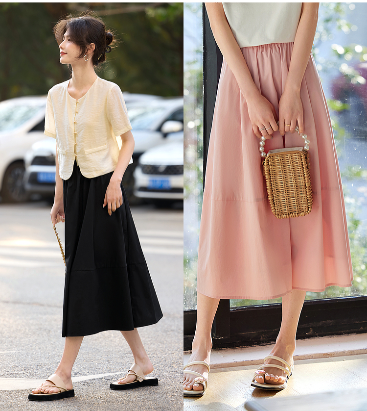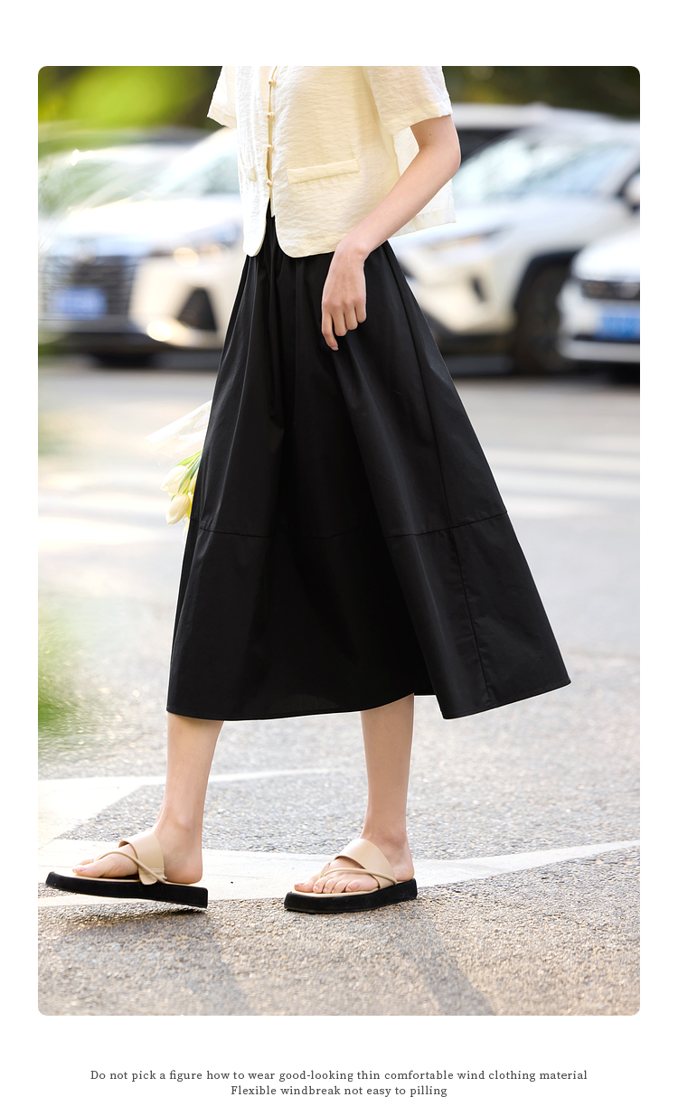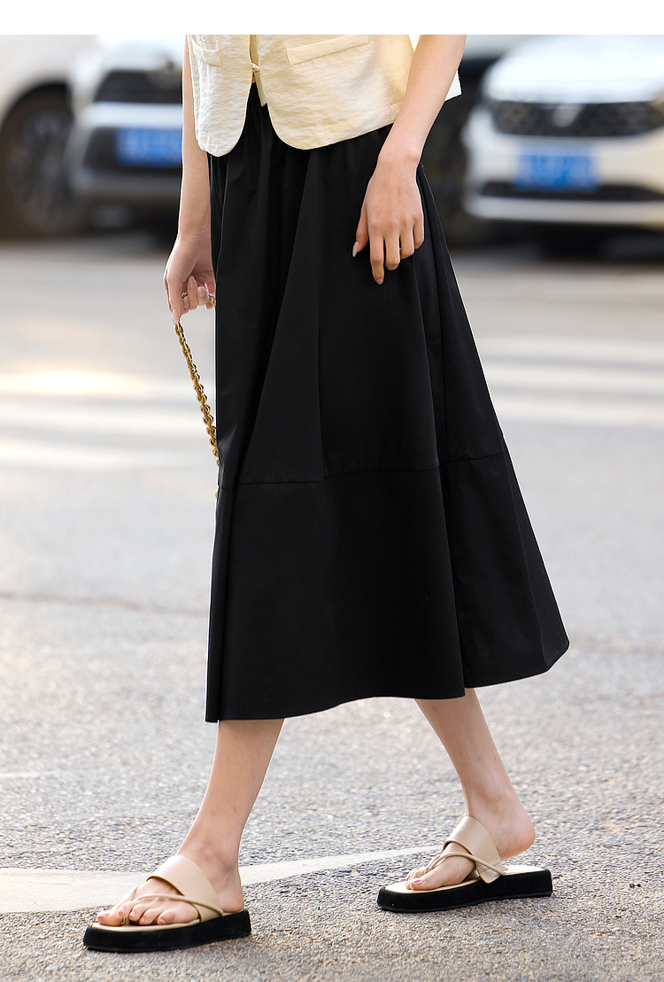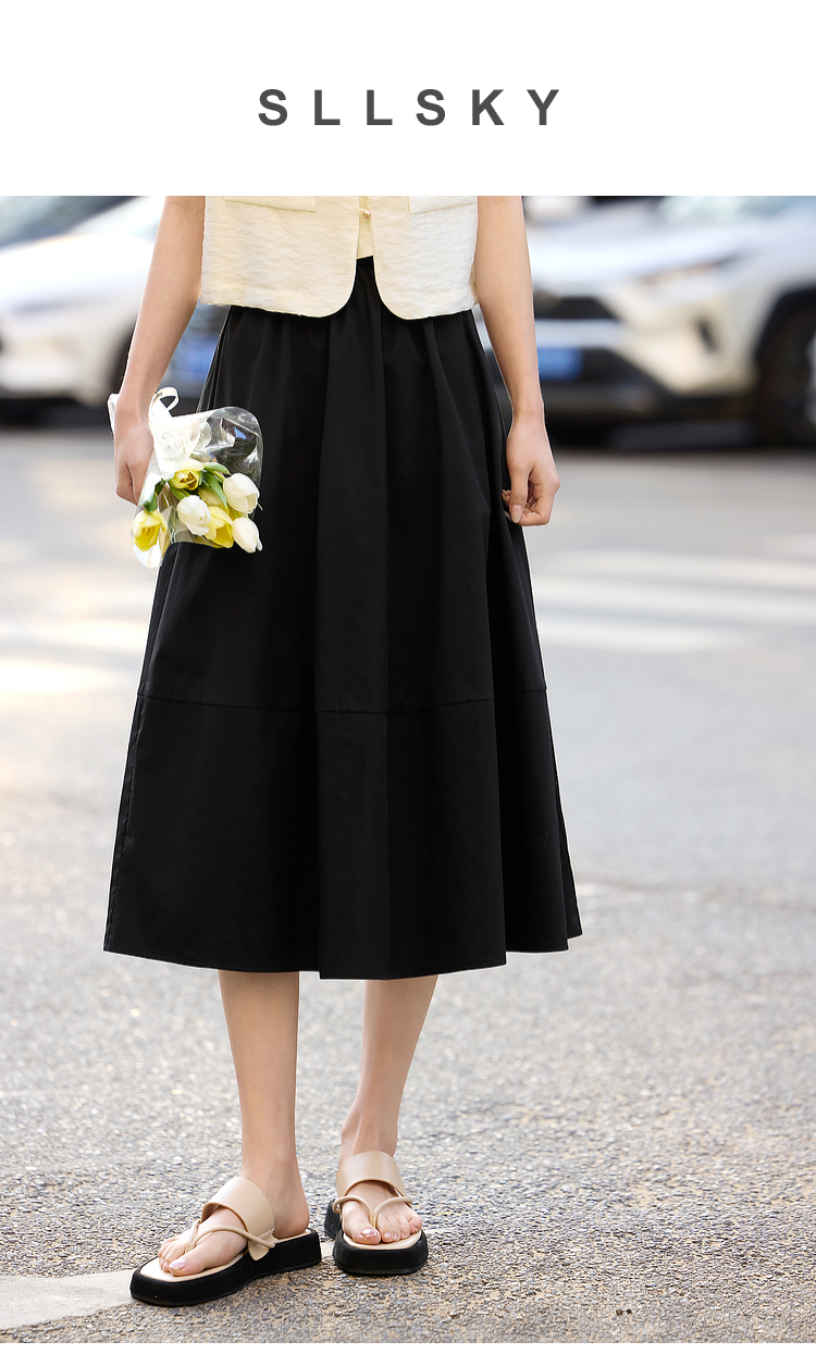 【夏日新品】熙世界黑色百褶半身裙女春夏2025年新款通勤百搭中长款a字裙伞裙