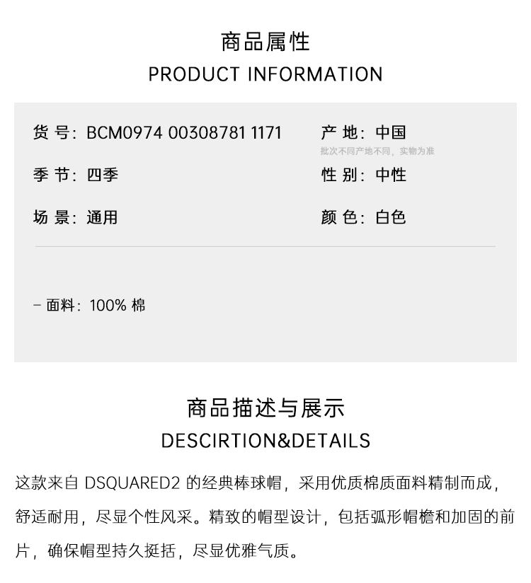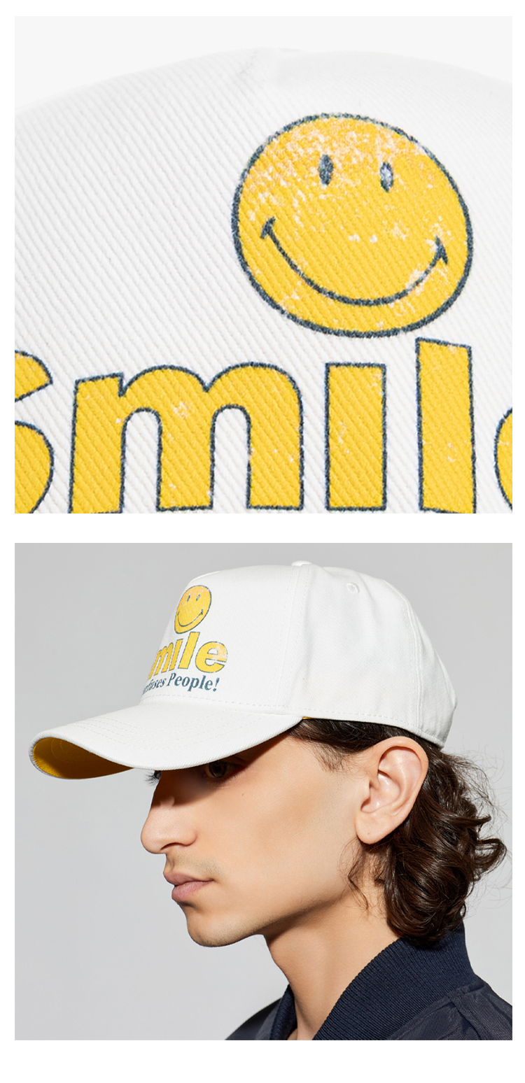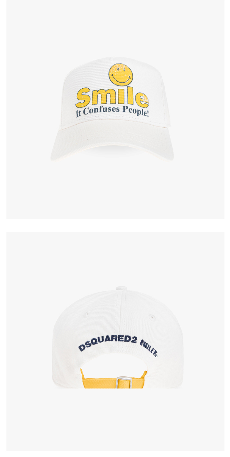 DSQUARED2 中性字母徽标印花黄色笑脸棉质棒球帽 白色 BCM0974 00308781 1171