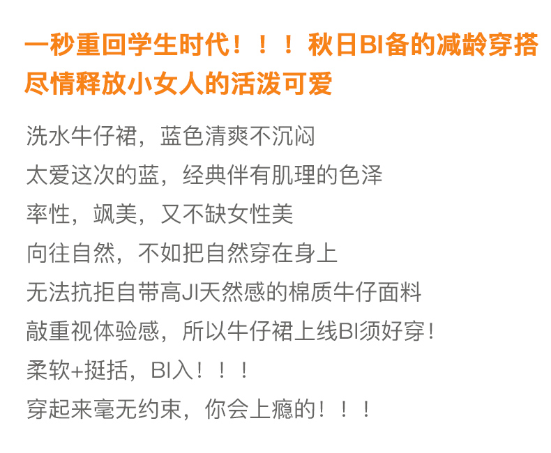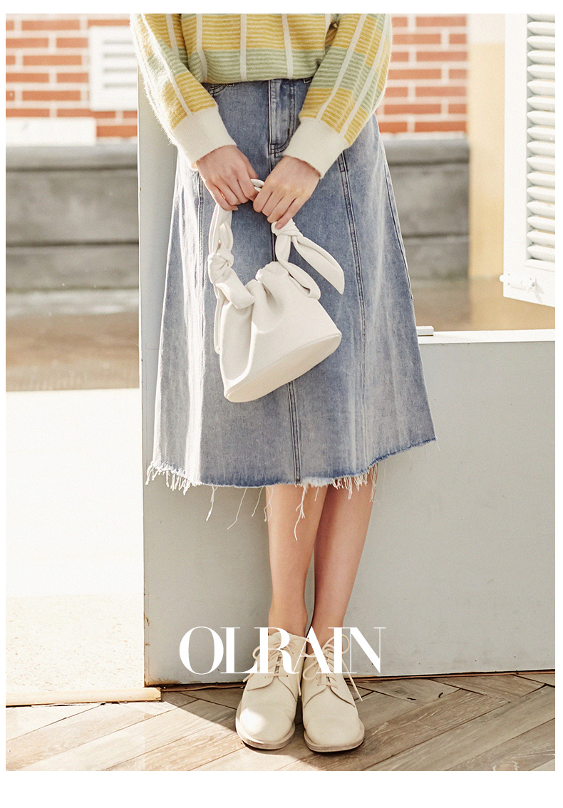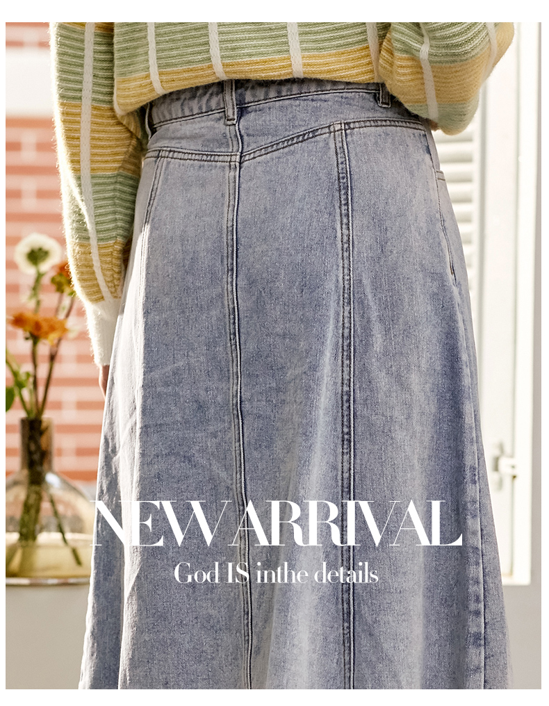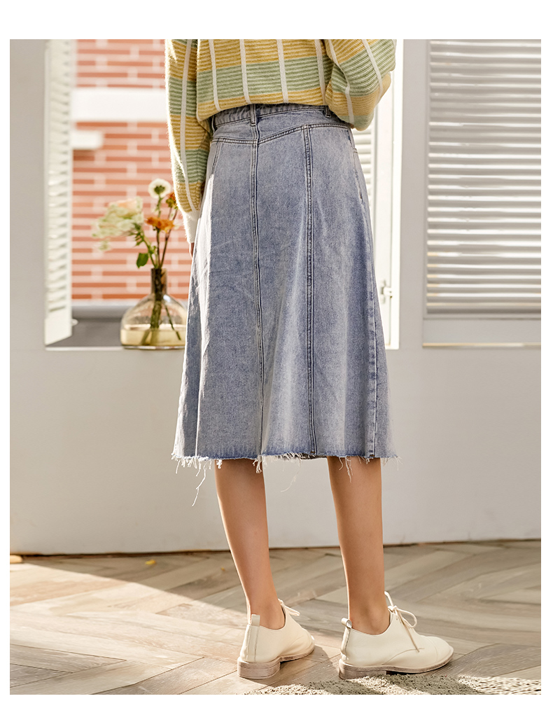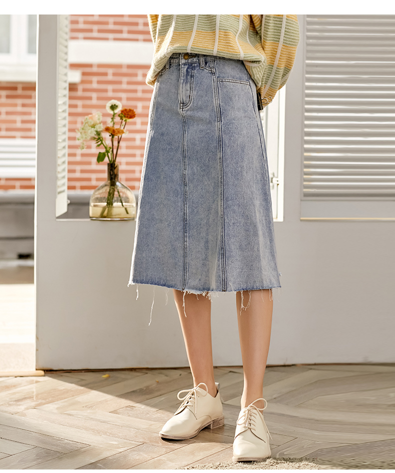 欧芮儿水洗牛仔半身裙女新款高腰显瘦中长款花边A字裙