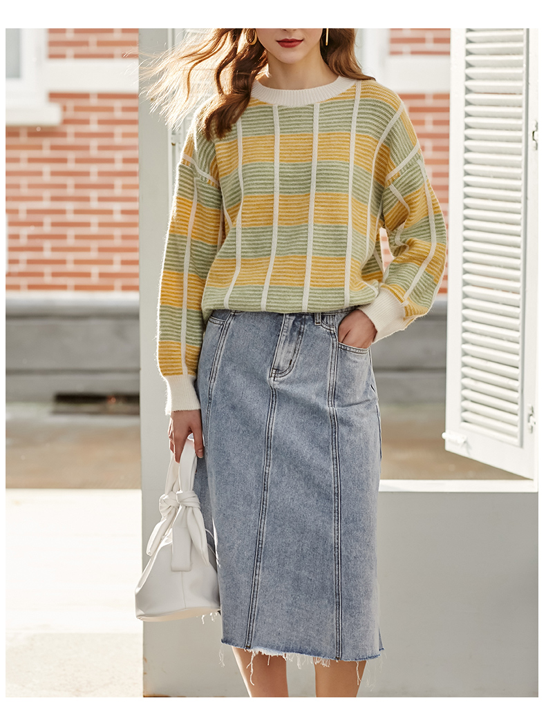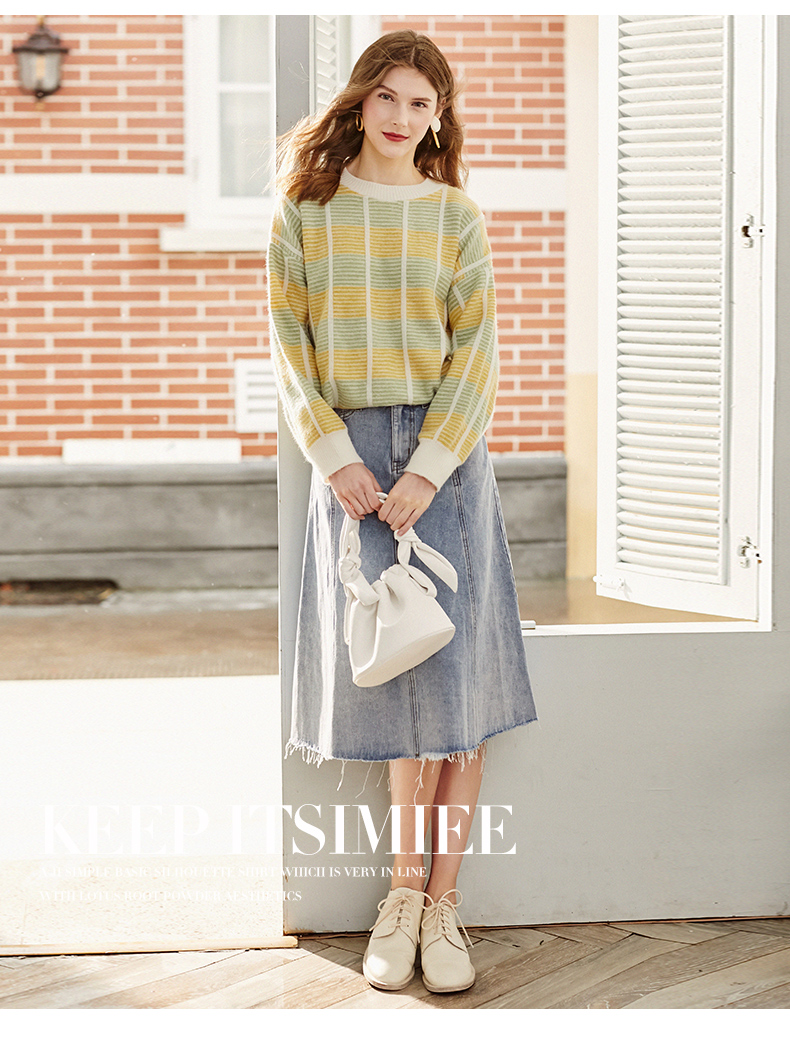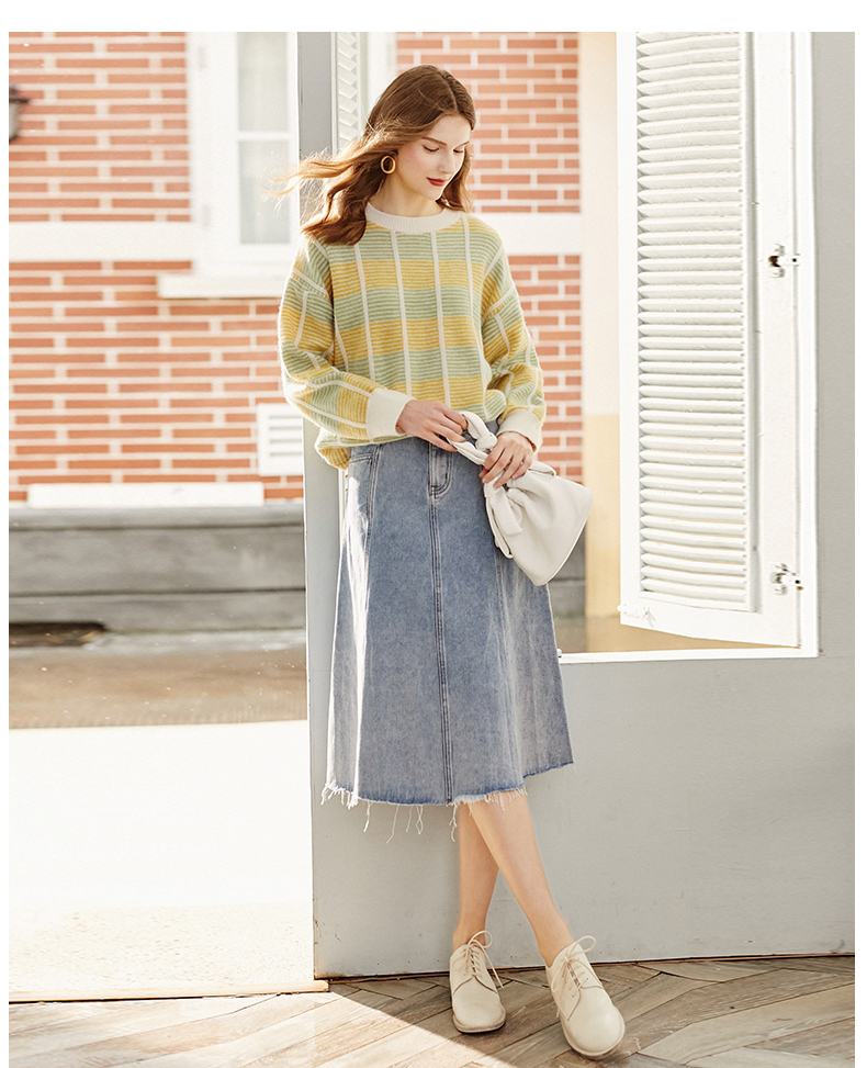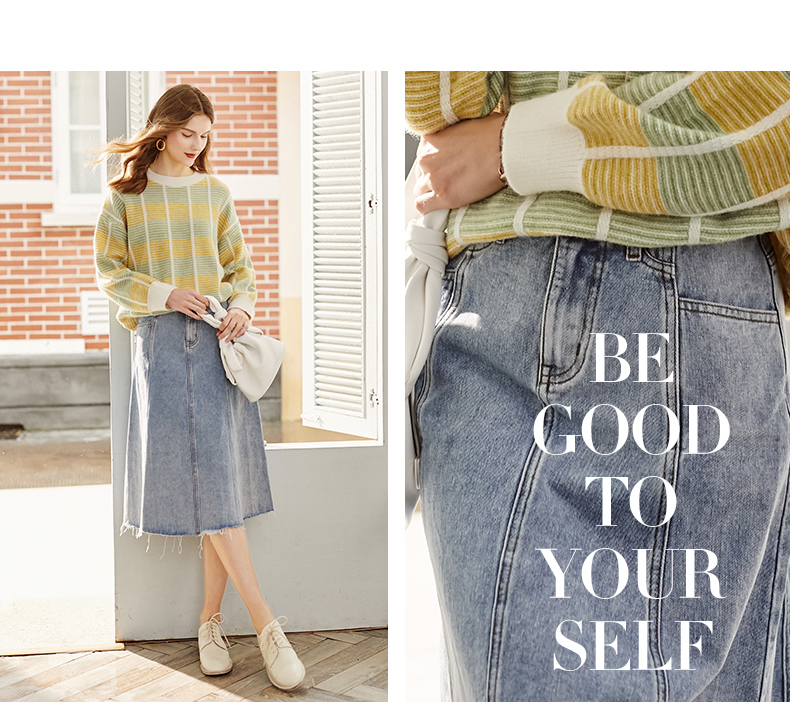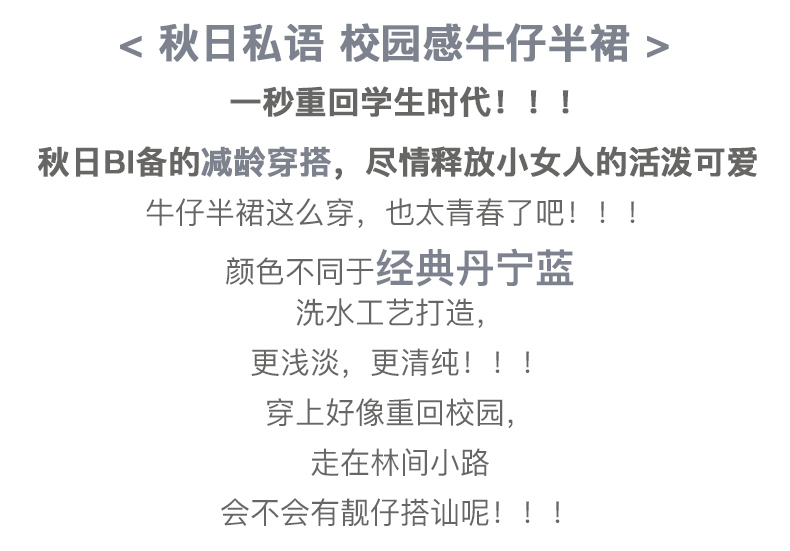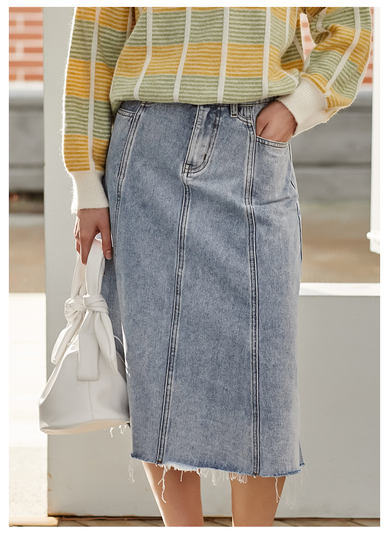 欧芮儿水洗牛仔半身裙女新款高腰显瘦中长款花边A字裙