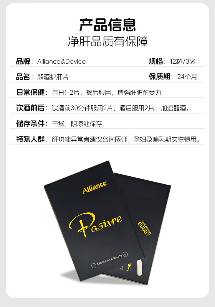 「快速解酒 畅饮无忧」Alliance & Device 解酒护肝片 12粒/盒