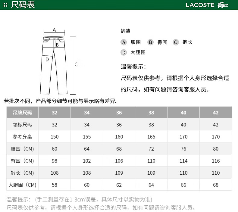 Lacoste法国鳄鱼女装新款时尚百搭休闲直筒裤长裤HF7449-10