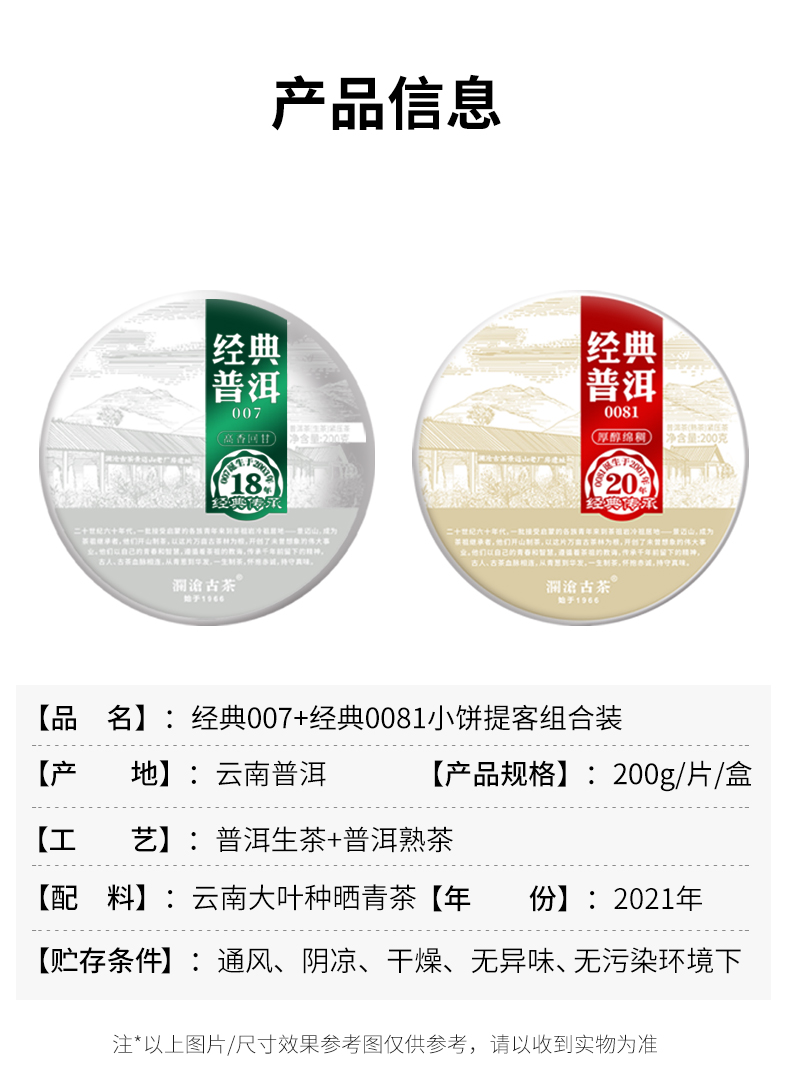 澜沧古茶2021年0081普洱熟茶+007普洱生茶组合云南七子饼茶叶小饼提客200g*10片