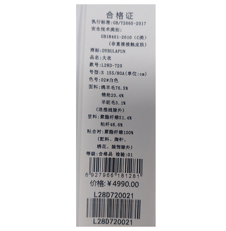 戴布拉芬大衣L28D720