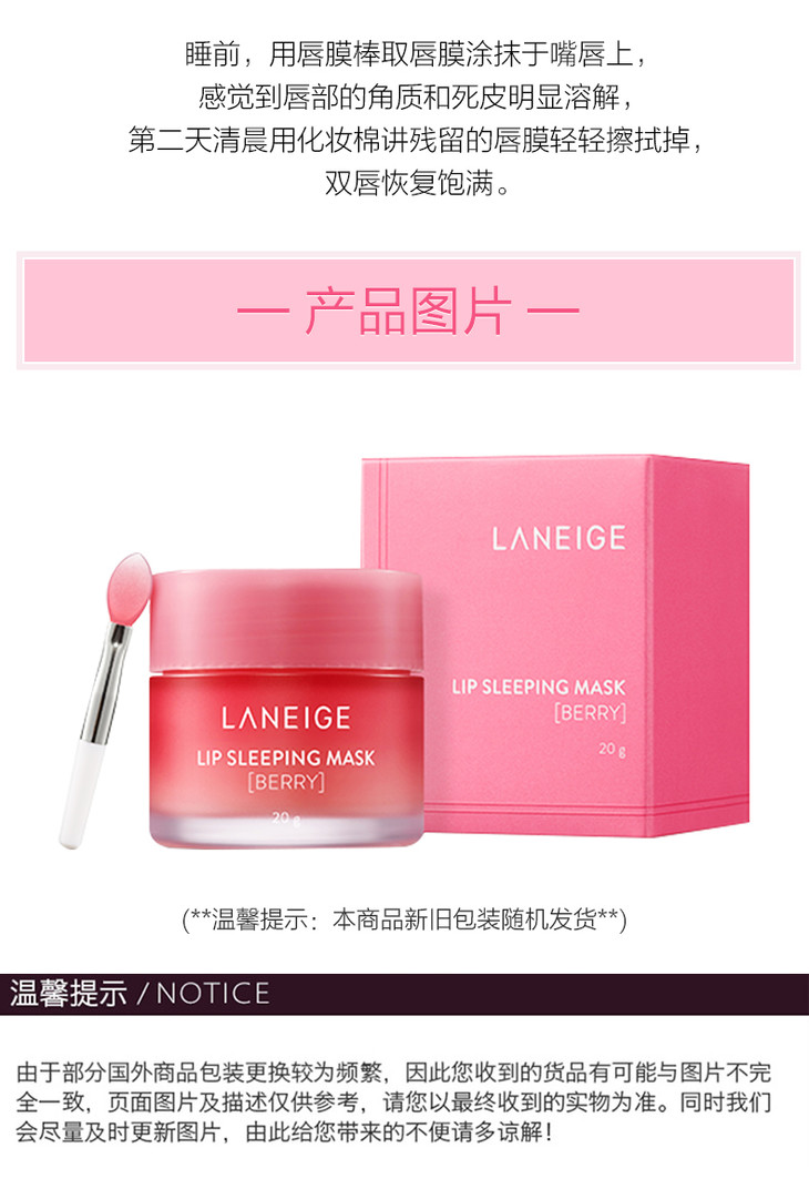 【海关保税直发】兰芝唇膜20g淡化唇纹去死皮润唇膏-会员5折