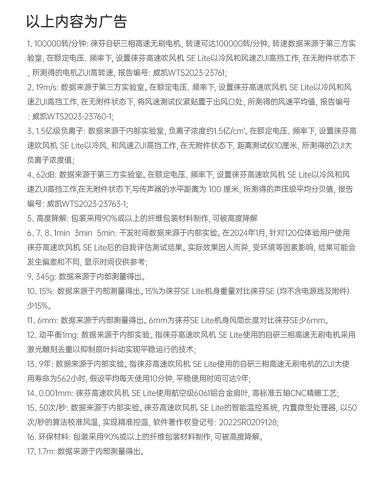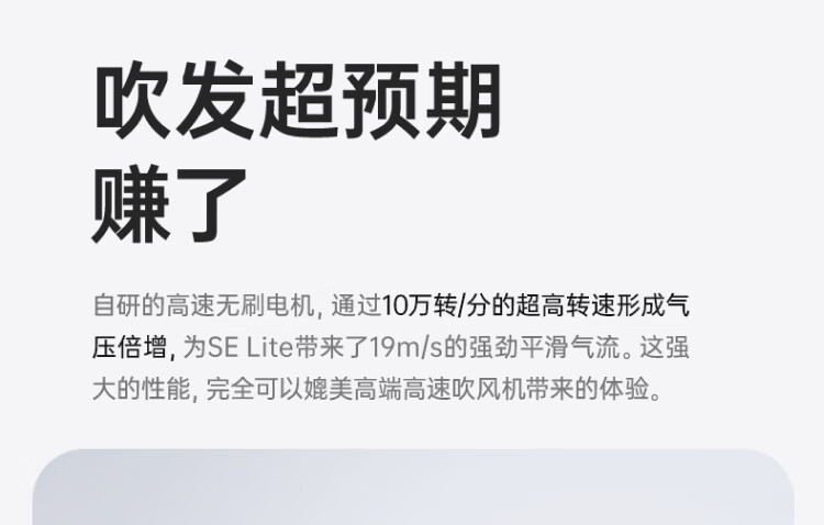 Laifen徕芬高速吹风机SE Lite 入门款负离子护发速干低噪电吹风高速吹风机 赠支架 家用宿舍便携风筒