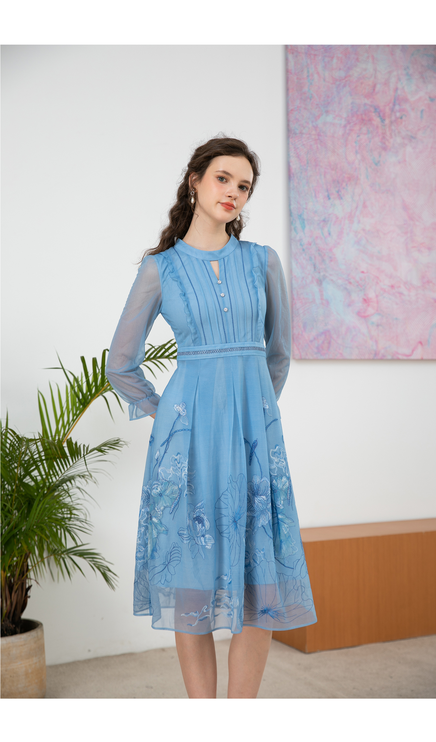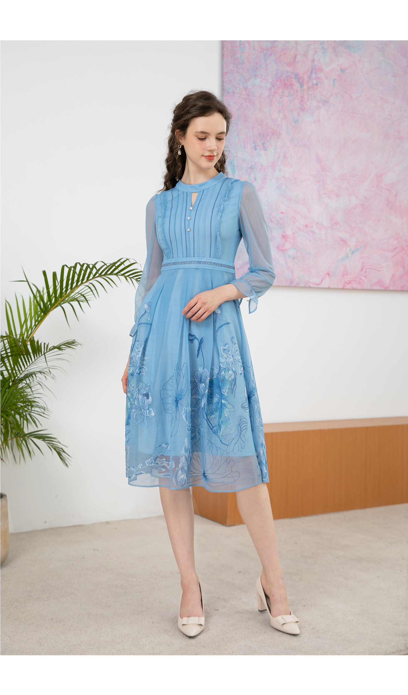 司歌连衣裙刺绣弹力长袖修身A901006X