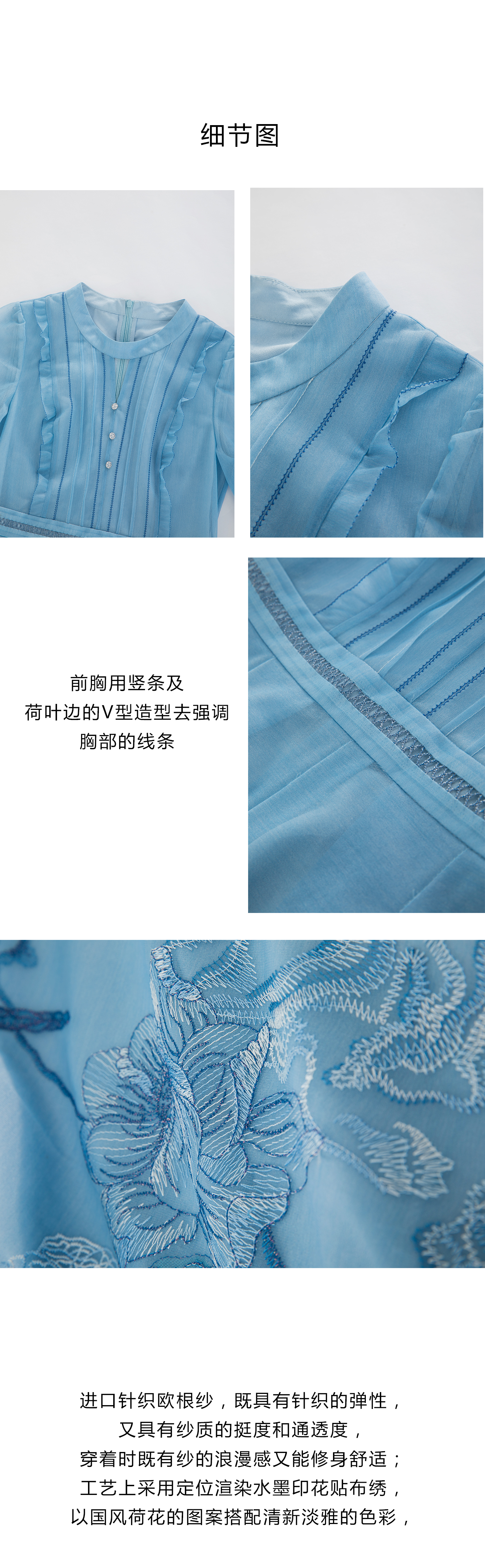 司歌国风改良旗袍连衣裙刺绣长袖裙A881298