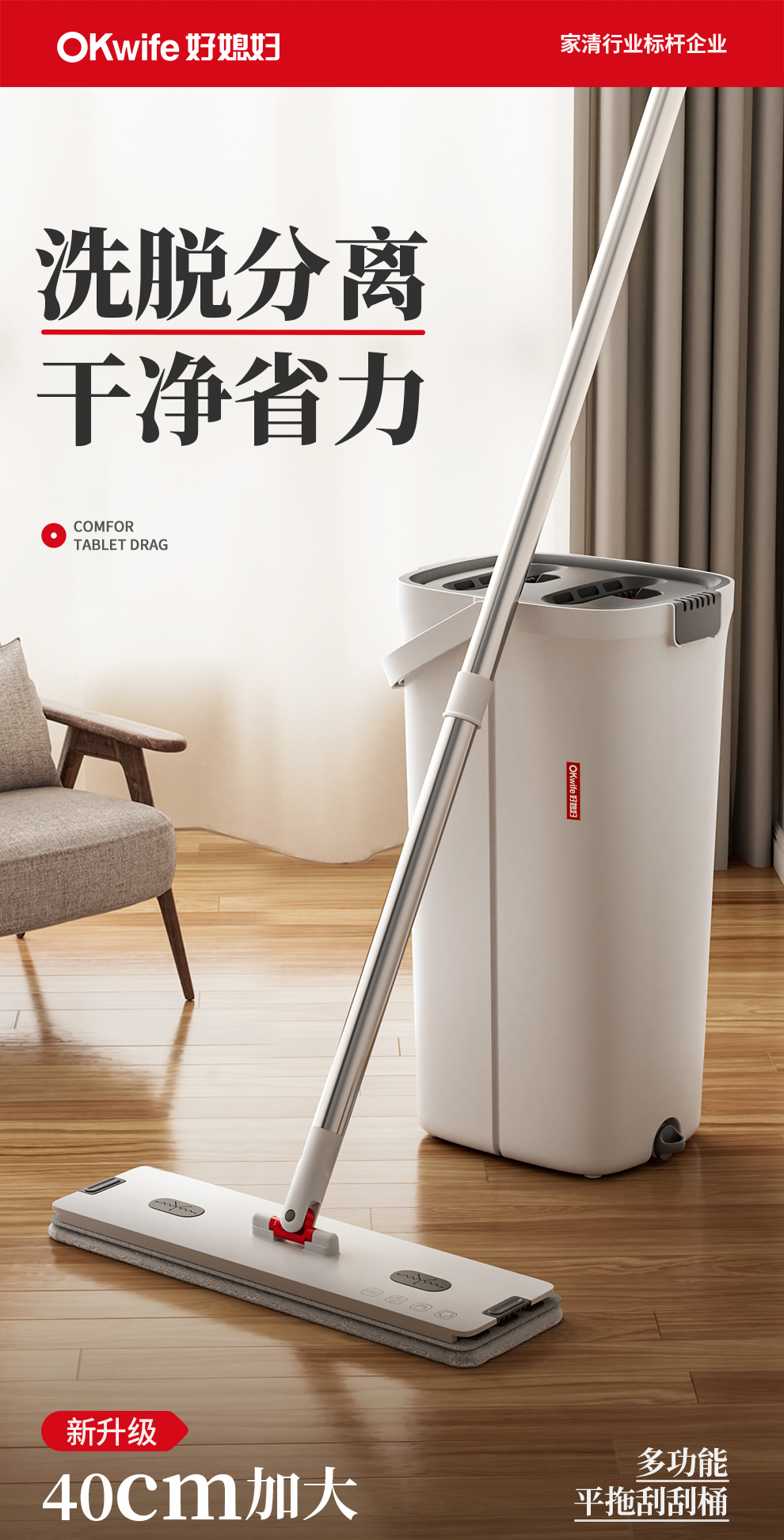 【新品】好媳妇平板拖把水桶一体家用一拖净干湿两用免手洗布懒人拖地神器