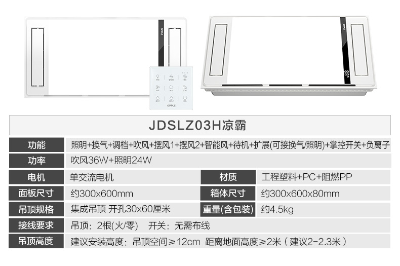 欧普(OPPLE)LZ03H厨房3合1变频凉霸