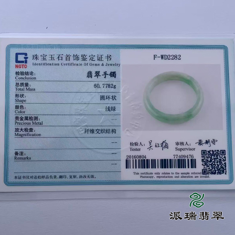 派瑞翡翠 翡翠手镯 糯种 浅绿