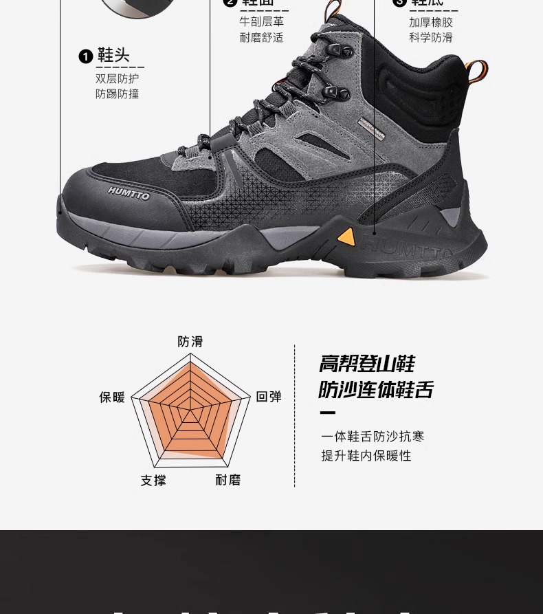 【288秒杀】悍途新款户外防水登山鞋防滑耐磨高帮户外徒步鞋运动越野爬山鞋 240760A/B