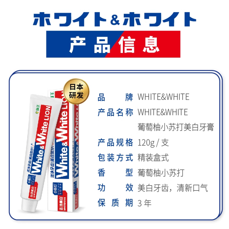 【到手5支】狮王葡萄柚小苏打牙膏/1份(120g*5支)