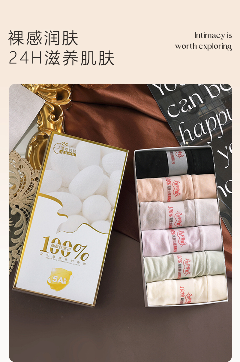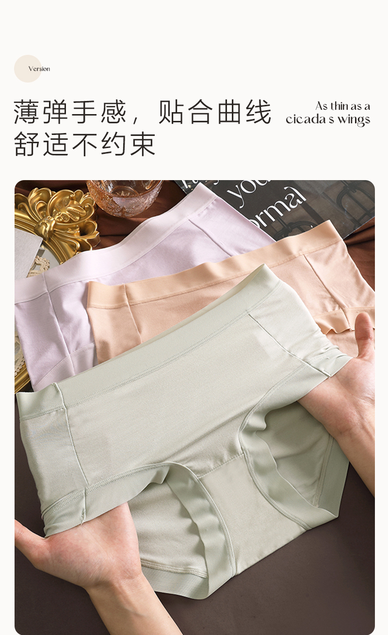 I’d爱帝女士内裤3条装高支莫代尔抑菌桑蚕丝高腰女裤
