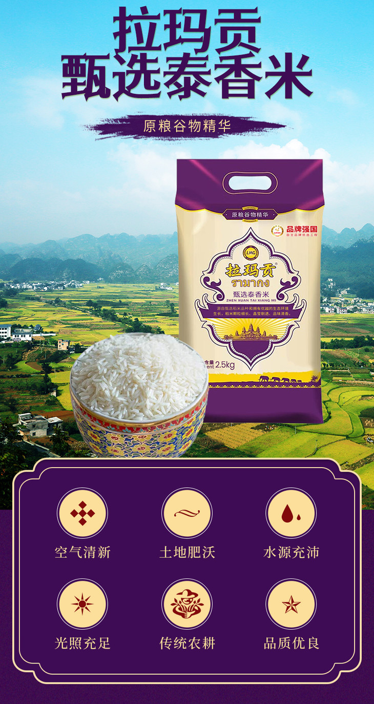 【到手2袋】【买1送1】拉玛贡甄选泰香米/1袋(2.5kg)生产日期:25年10月
