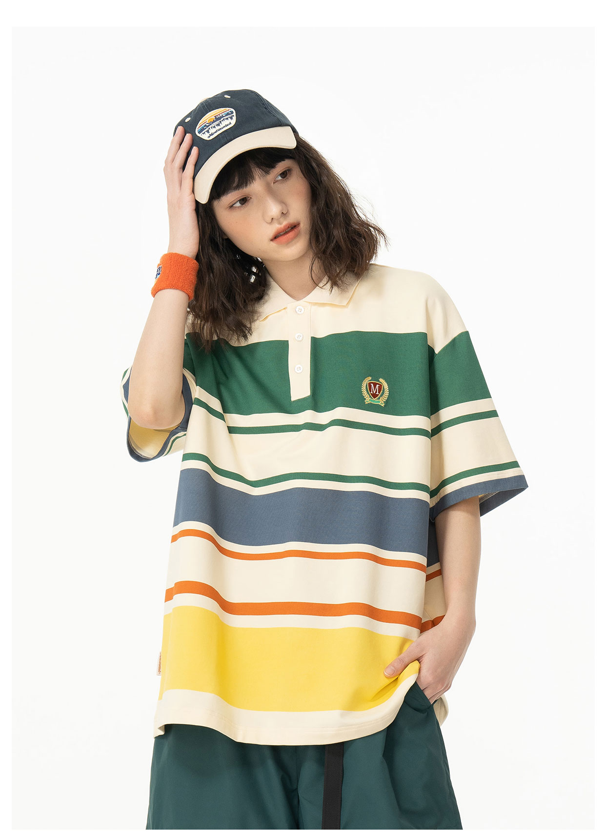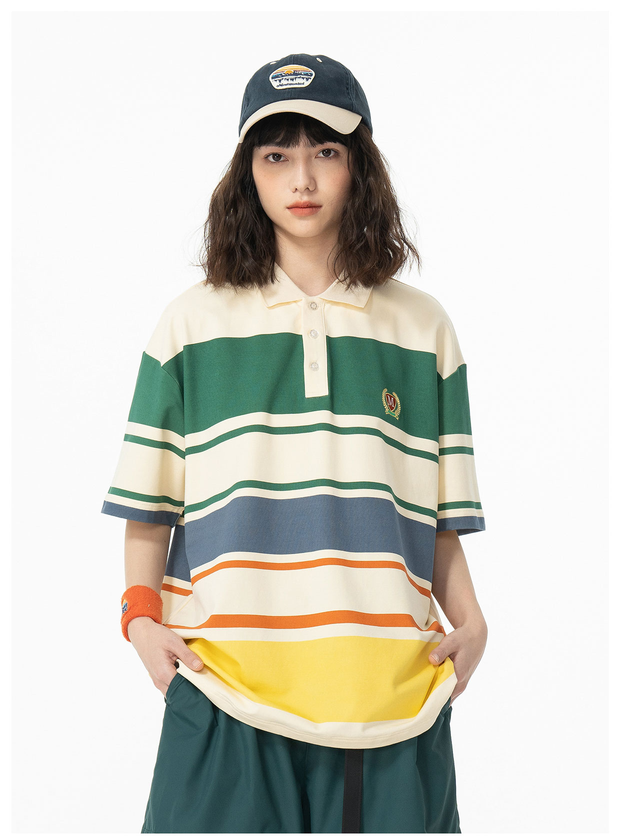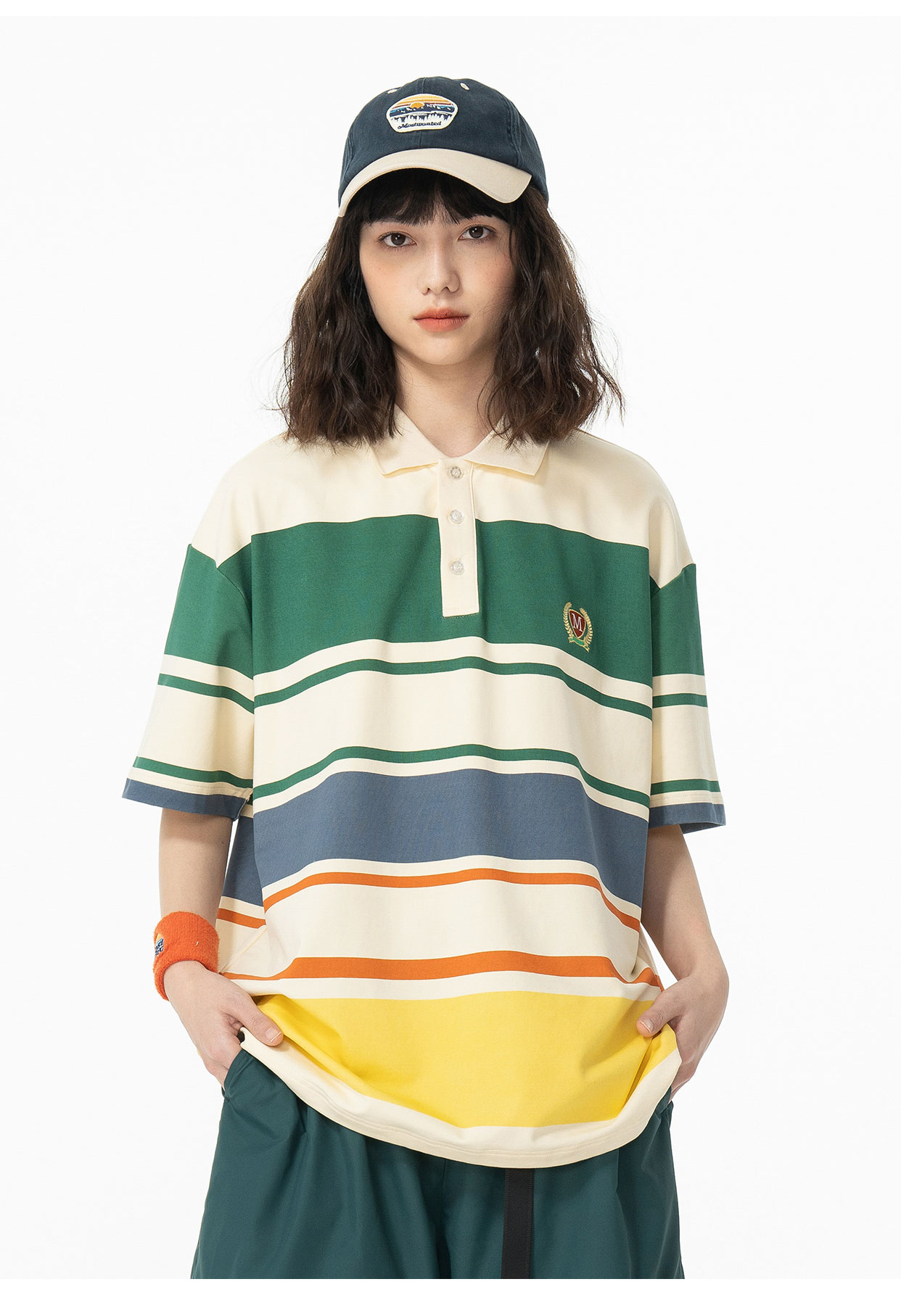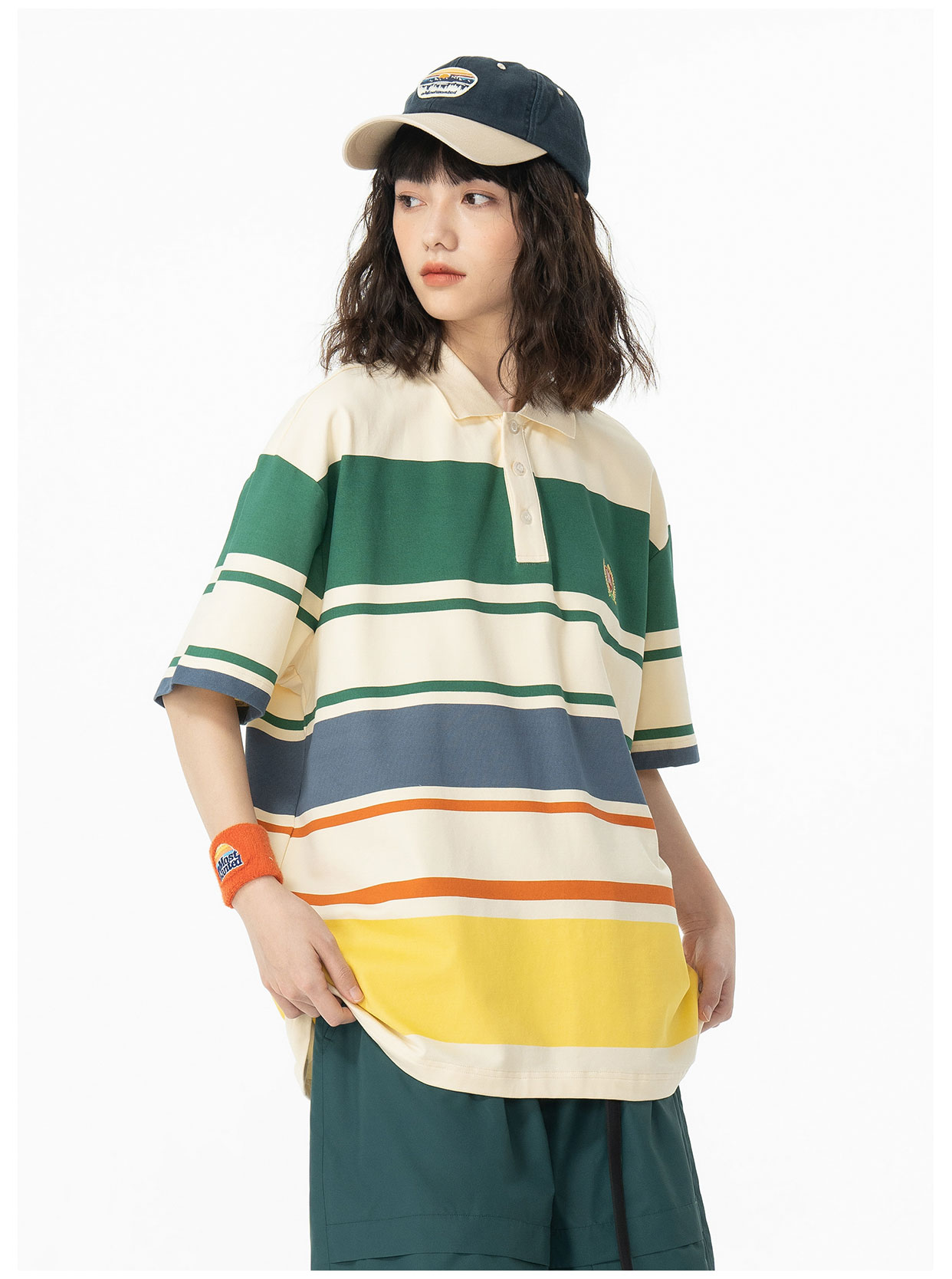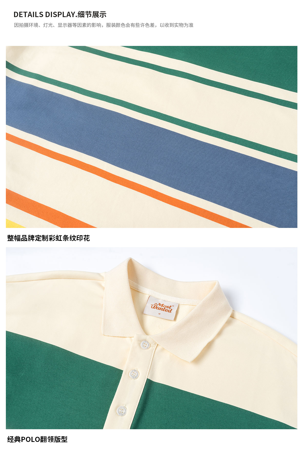 mostwantedlab彩虹/MWL-2312097/彩虹宽条纹印花polo衫