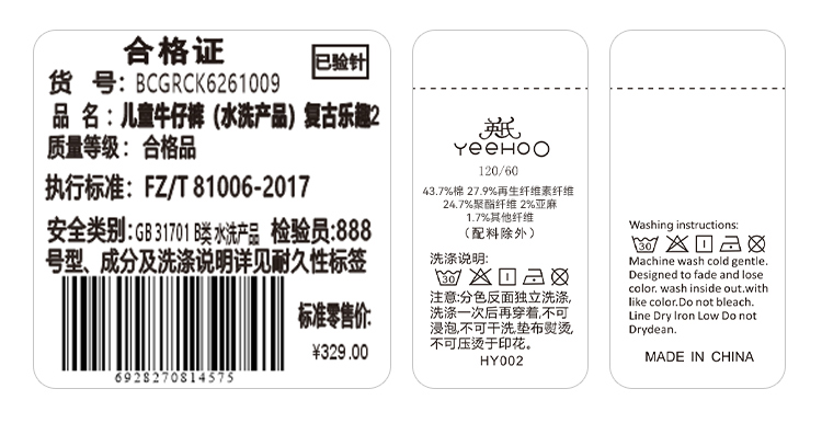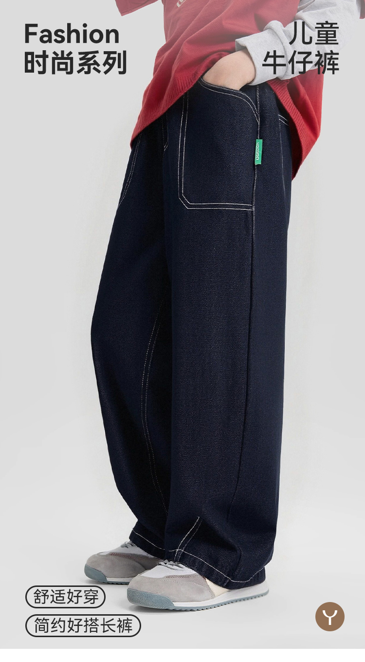 【英氏】【酵素软牛仔】【110-175】男童春秋简约复古牛仔裤