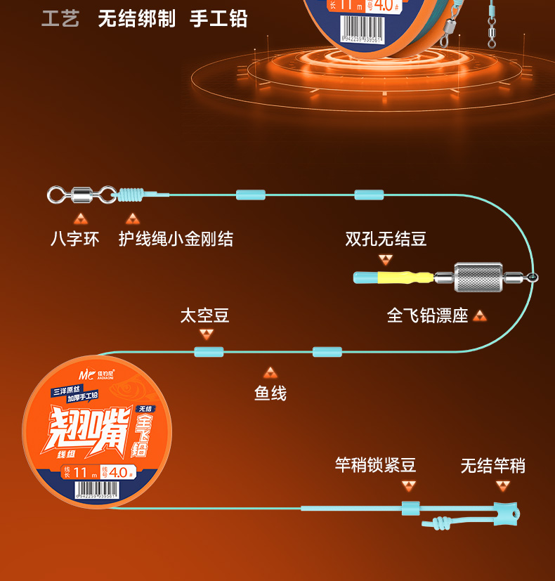 佳钓尼全飞飞铅翘嘴线组无结主线成品鱼线绑好钓组套装立漂专攻翘草鱼鲤鱼