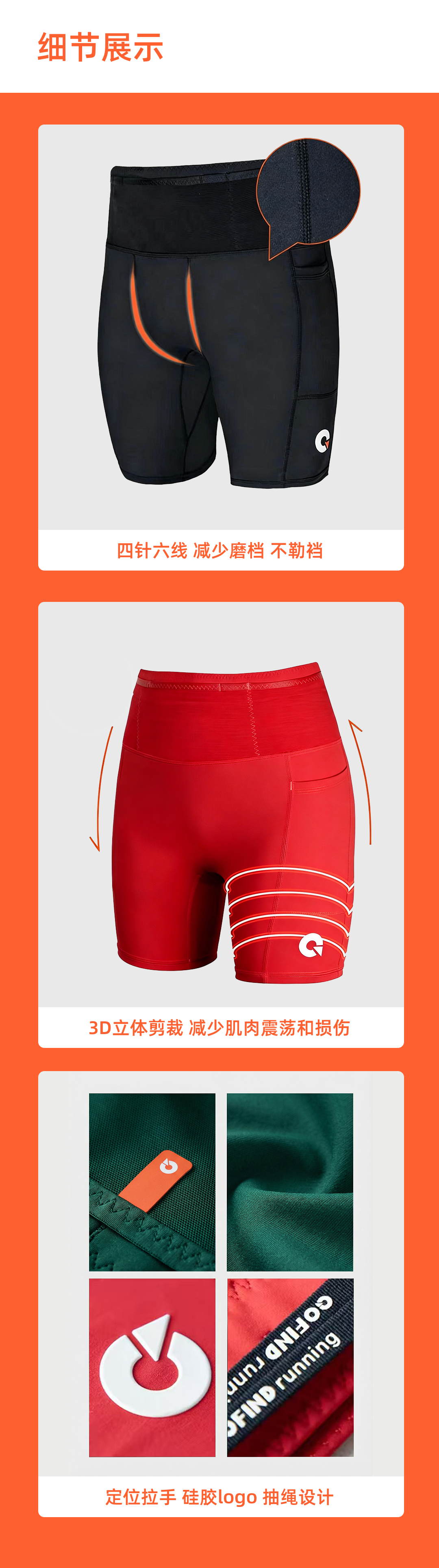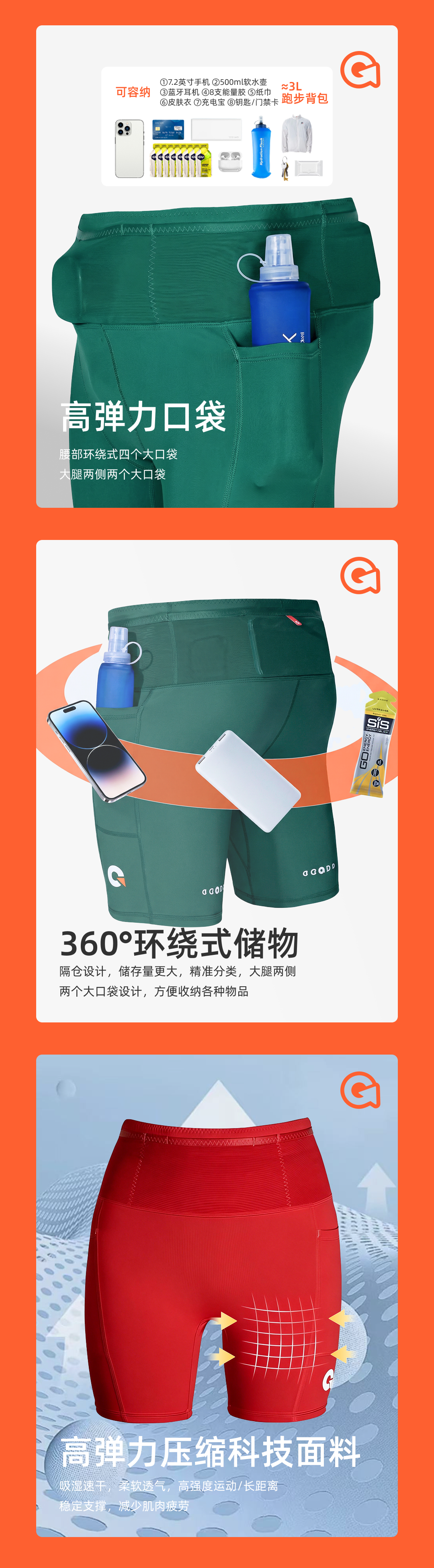 果凡户外登山巨能装袋鼠裤多口袋弹力果凡压缩裤夏季冰凉跑步GSD11215/GSD12216/GSD11275/GSD12276