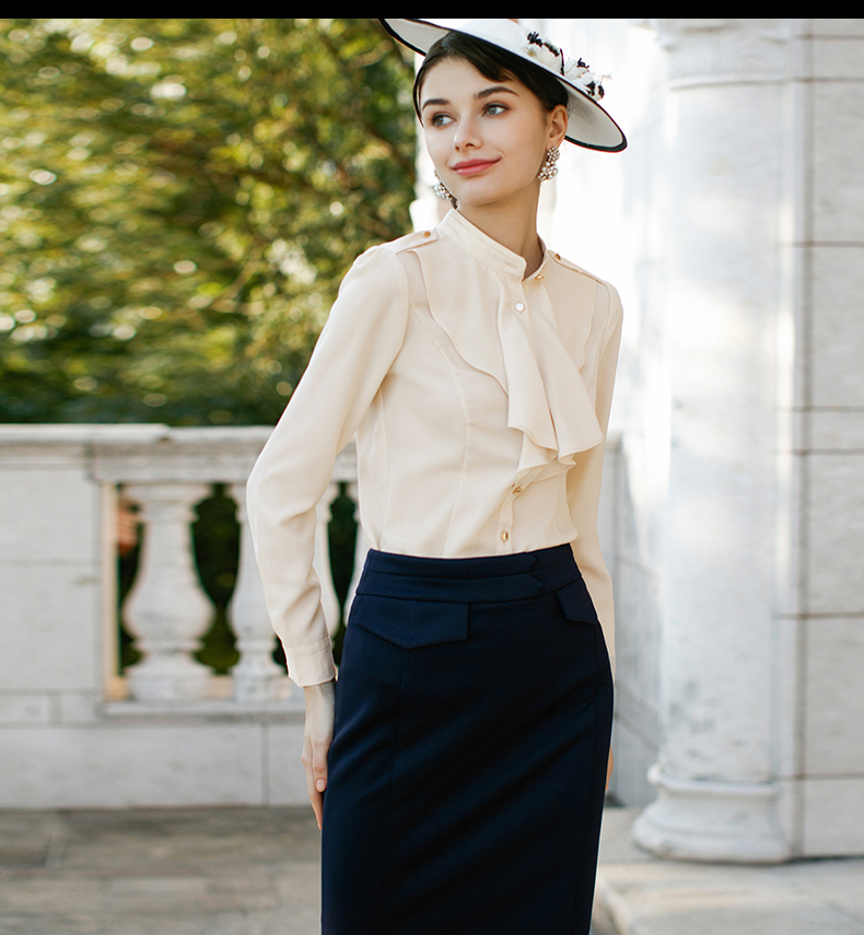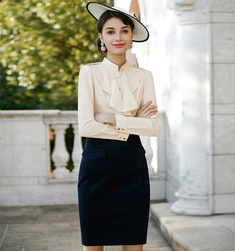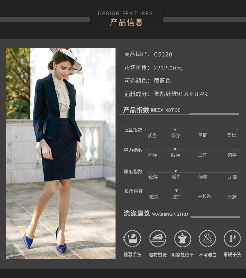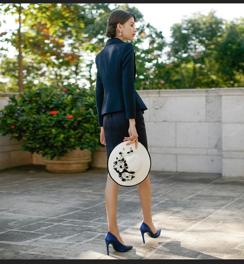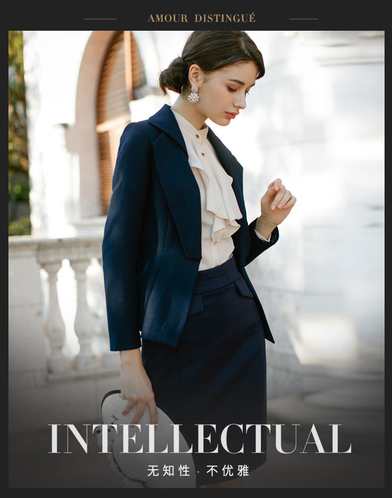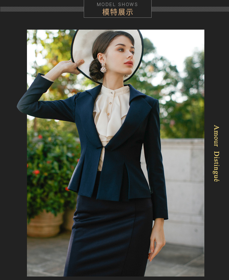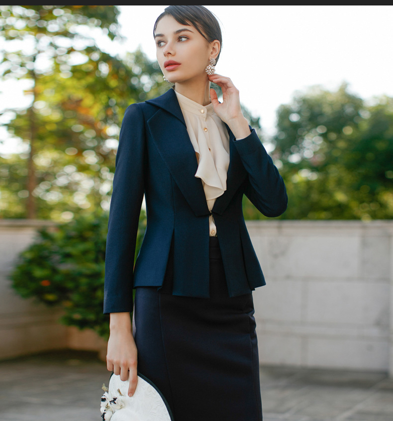 IWY/藏青色修身荷叶边显瘦西装套裙名媛气质职业装CS220