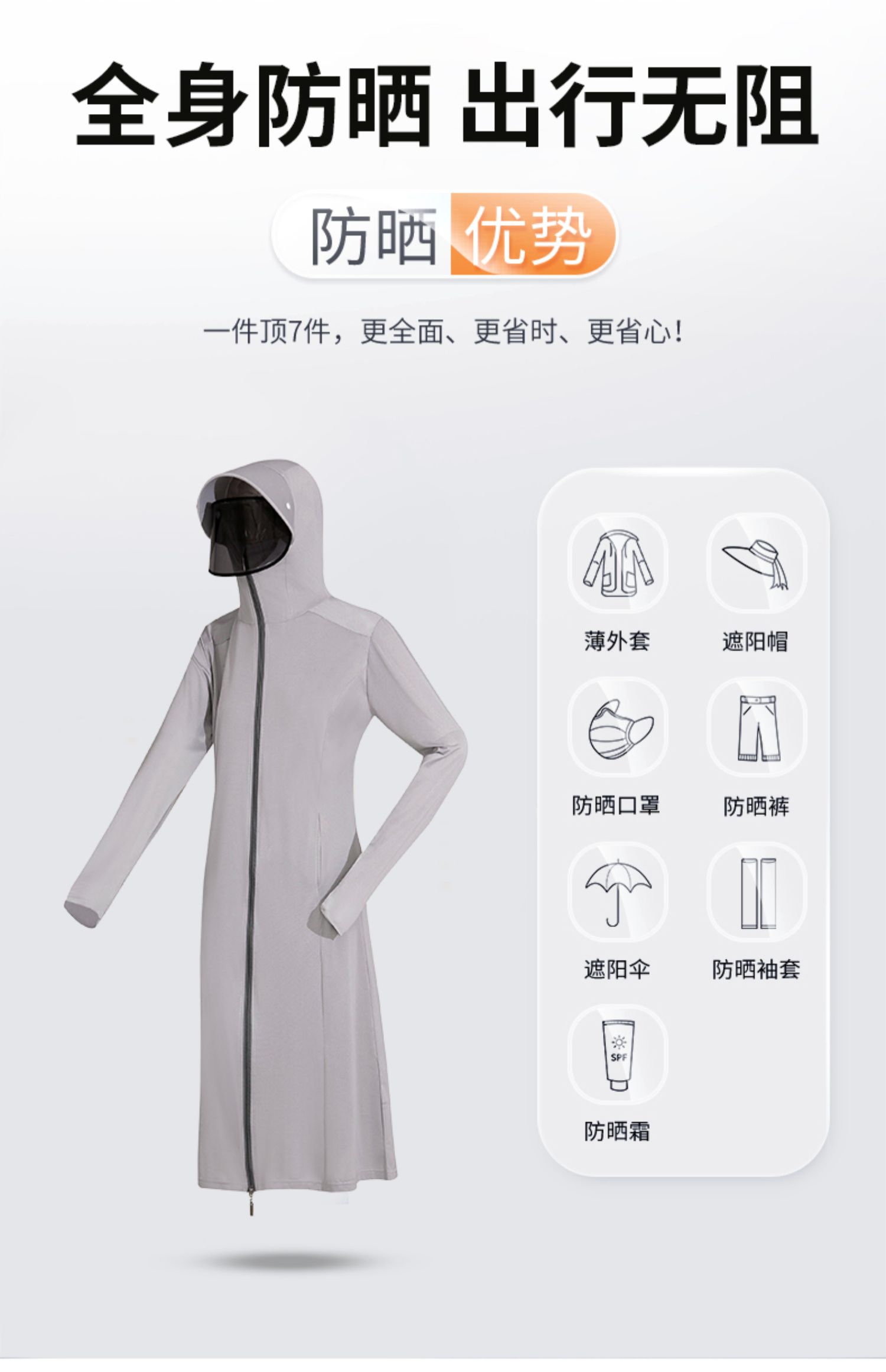 【长款防晒衣】女防紫外线夏户外薄衫透气冰丝凉感防晒服 商品图4