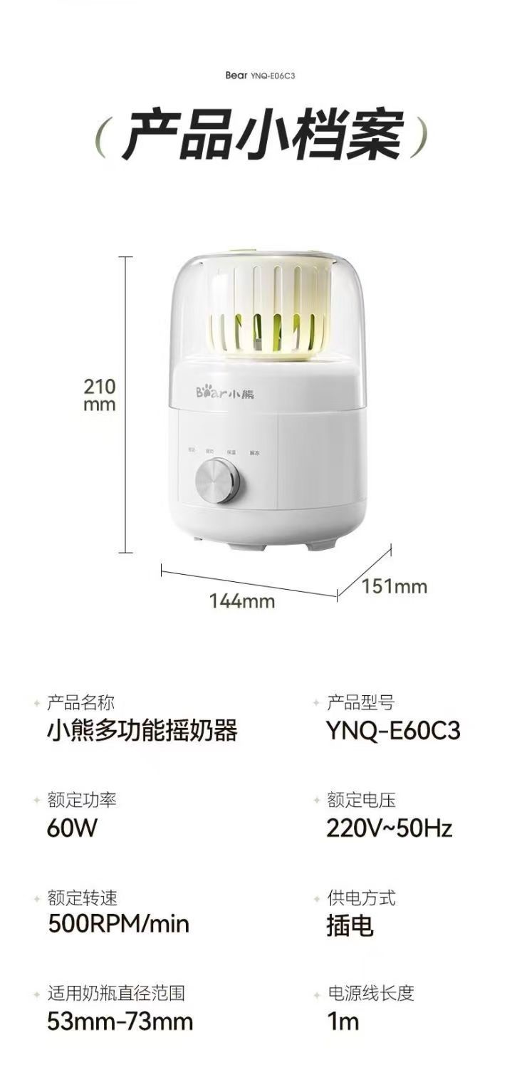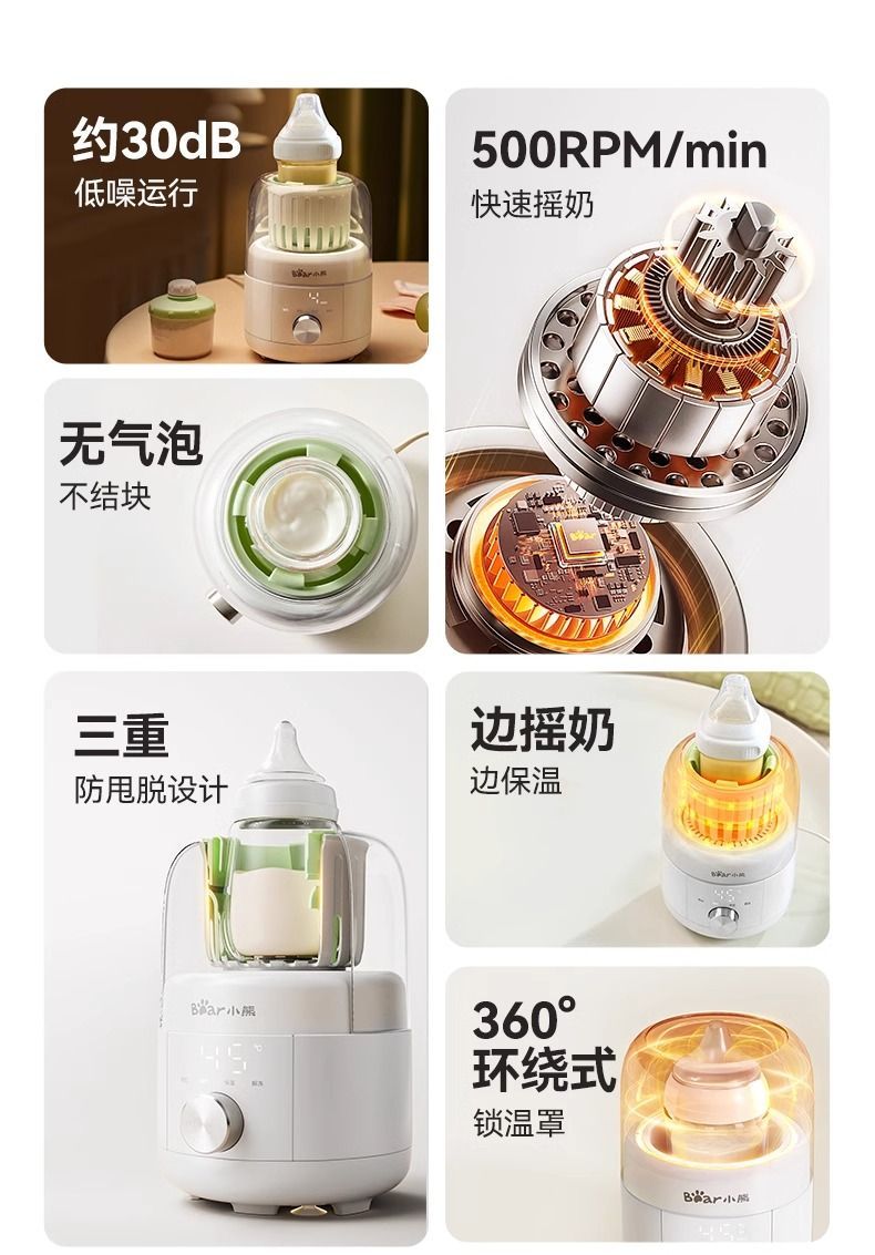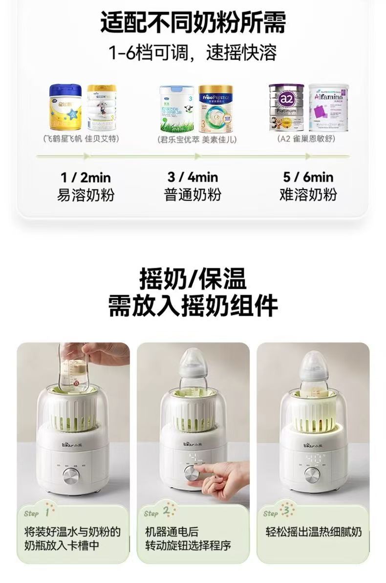 小熊摇奶器温奶二合一全自动电动恒温摇奶器婴儿静音无水暖奶器